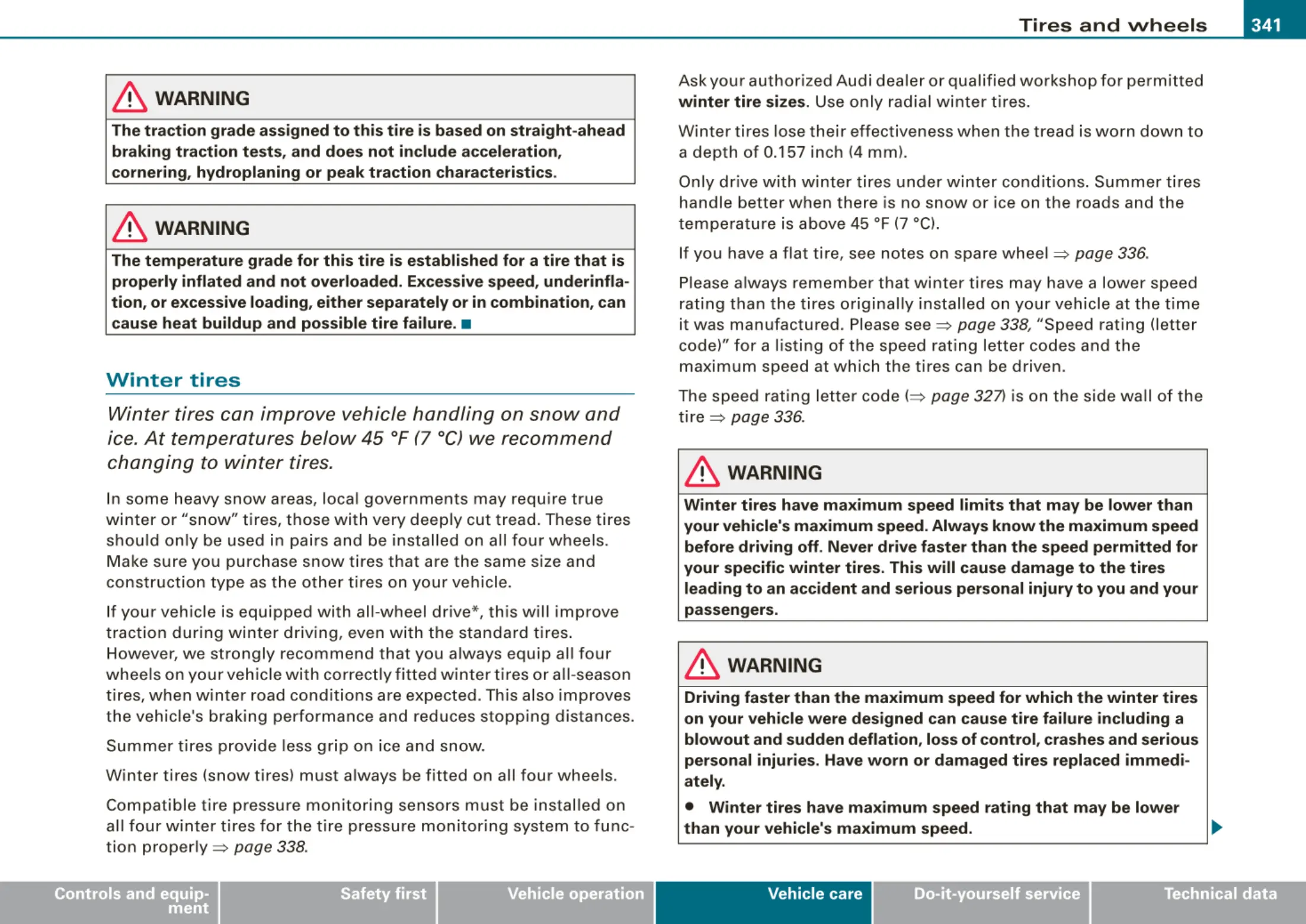 Only drive wi th w inte r ti res under w int er cond it io ns. Sum mer t ire s