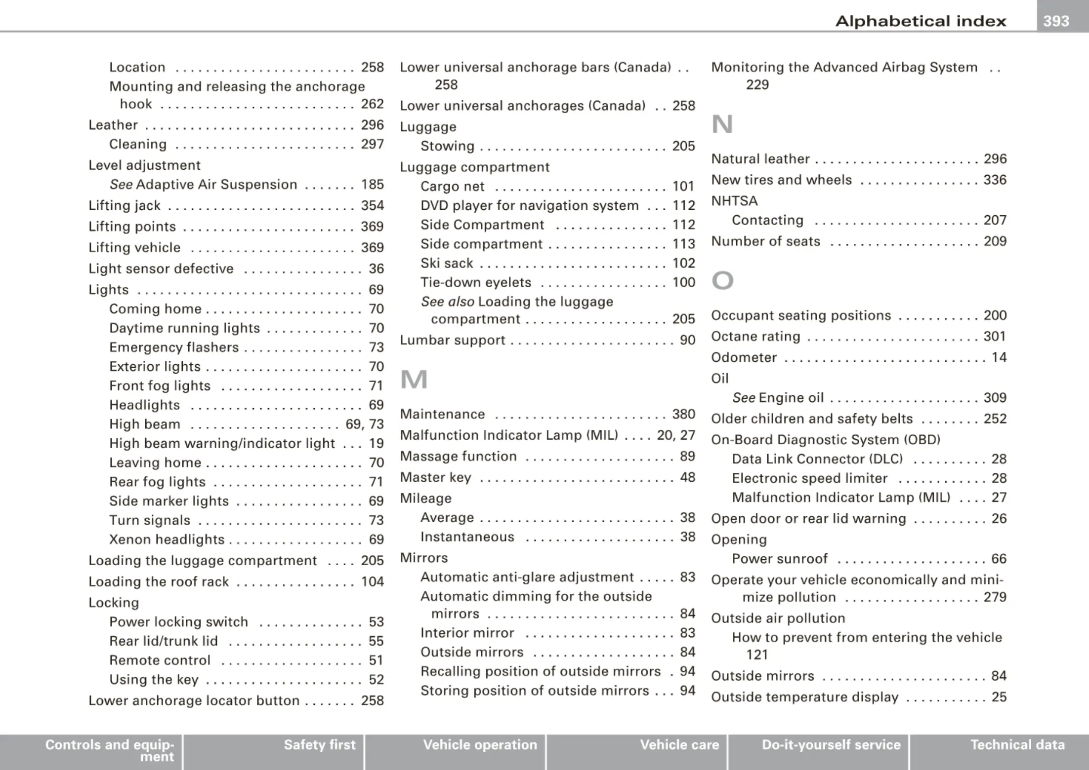 Loading the luggage compartment . .. . 205
