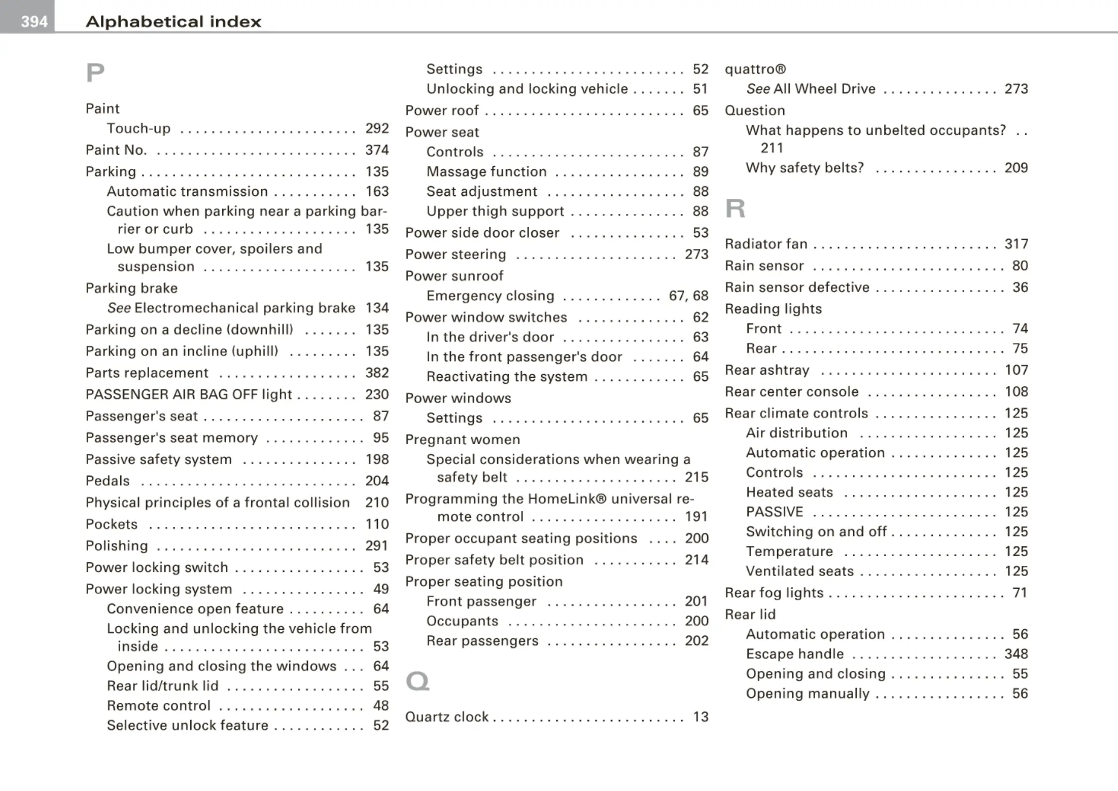 Passenger's seat memory . . . . . . . . . . . . . 95