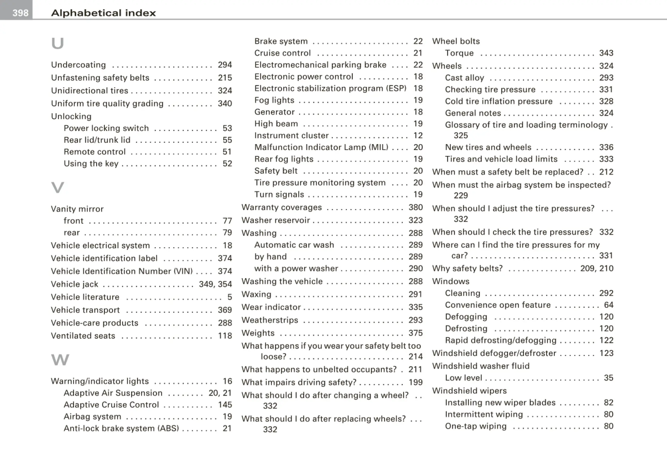 Electronic stabi lization program (ESP) 18 Checking tire pressure ............ 331