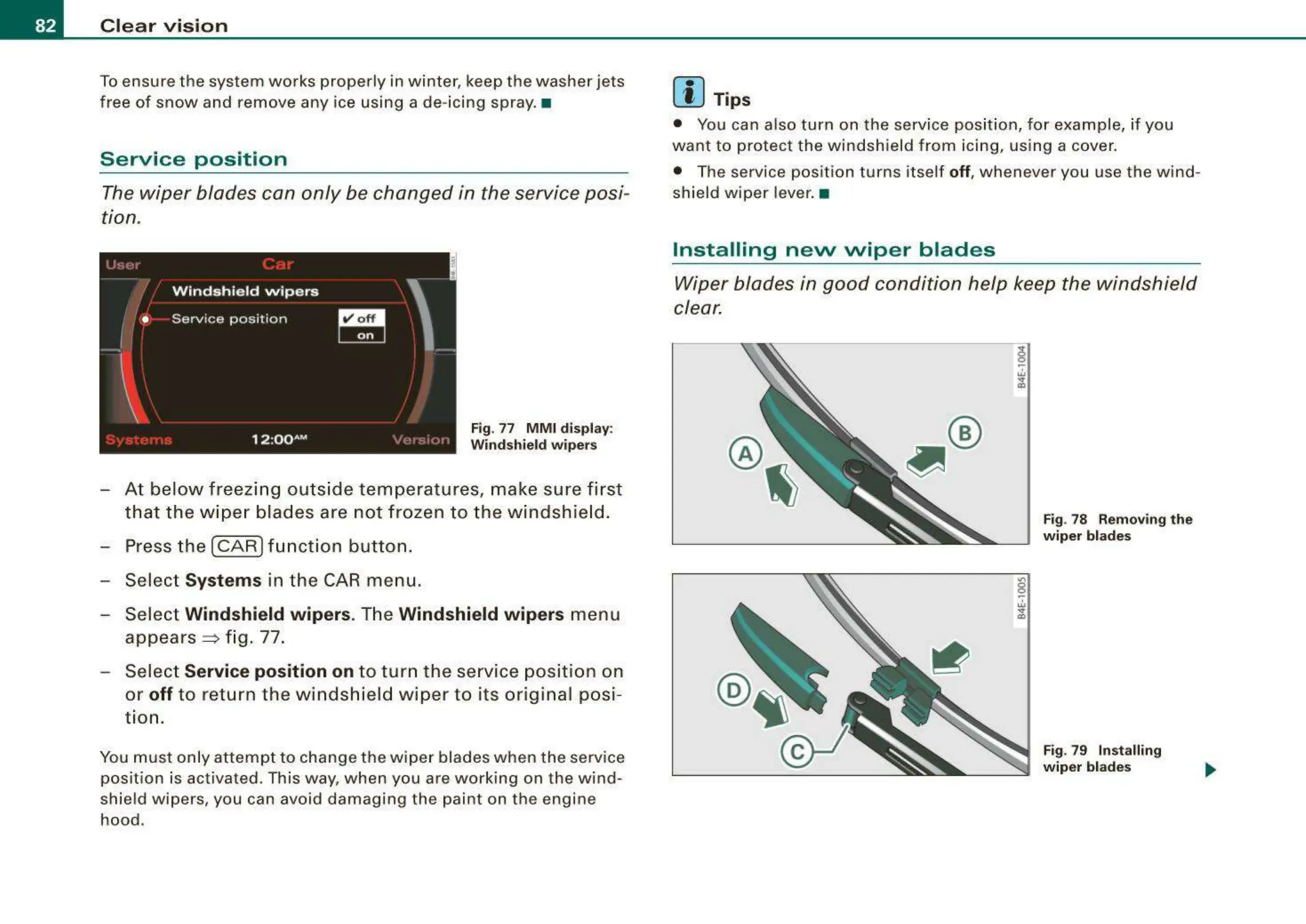 The wiper blades can only be changed in the service posi-