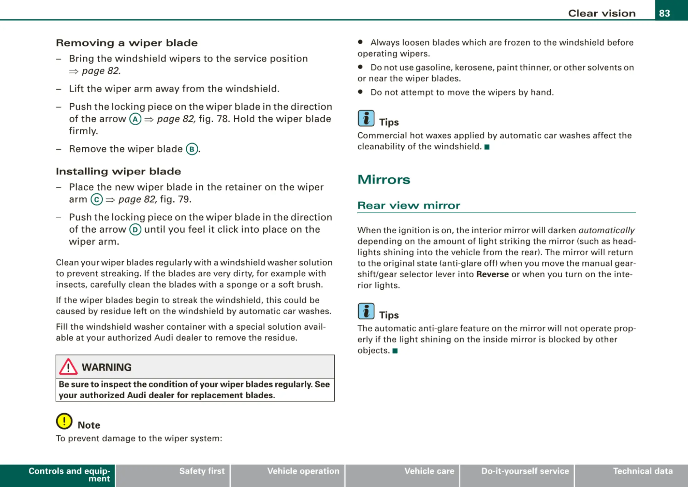 page 82, fig. 78. Hold the wiper blade