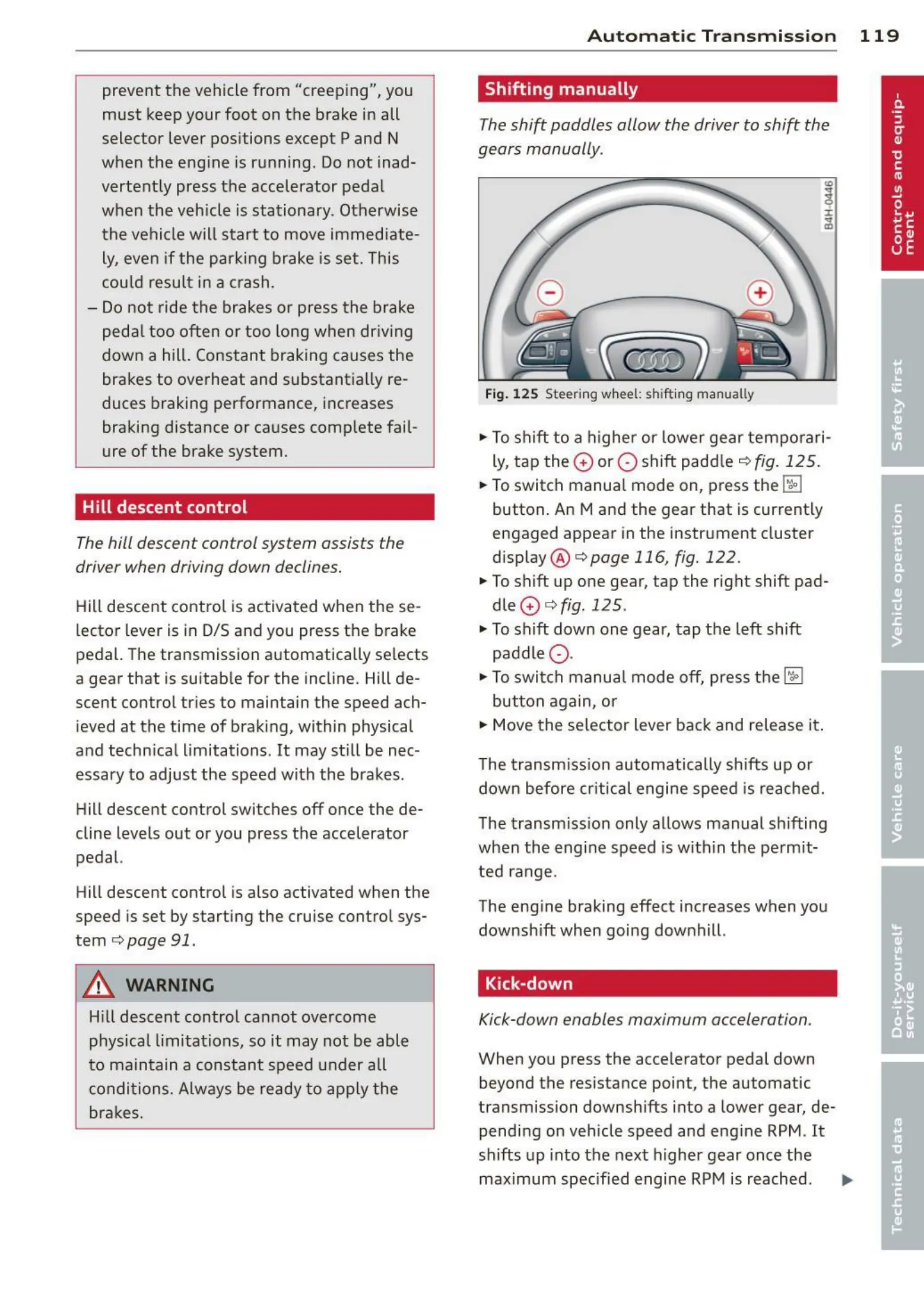 Fig. 12 5 Steer ing whee l: shift ing manually