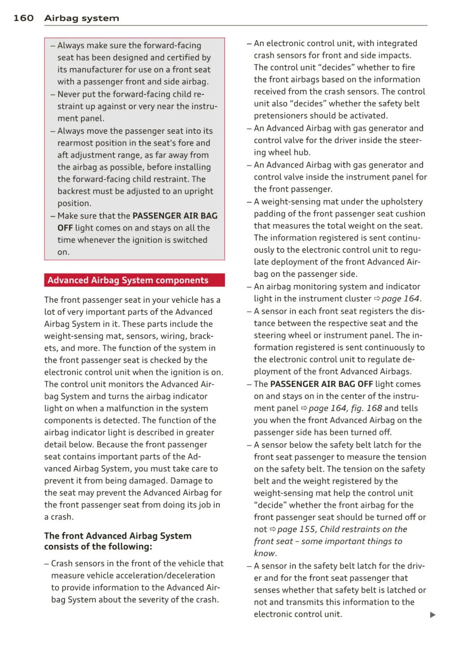 160 Airb a g sys t e m