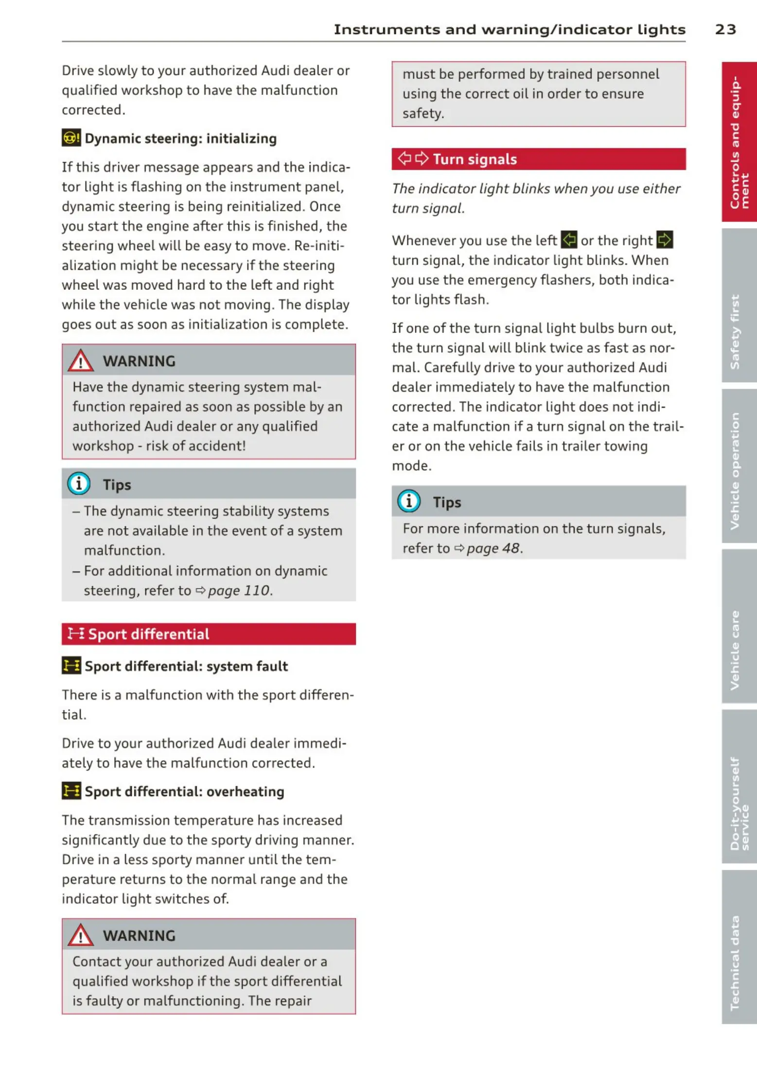 mal. Carefully drive to your authorized Audi