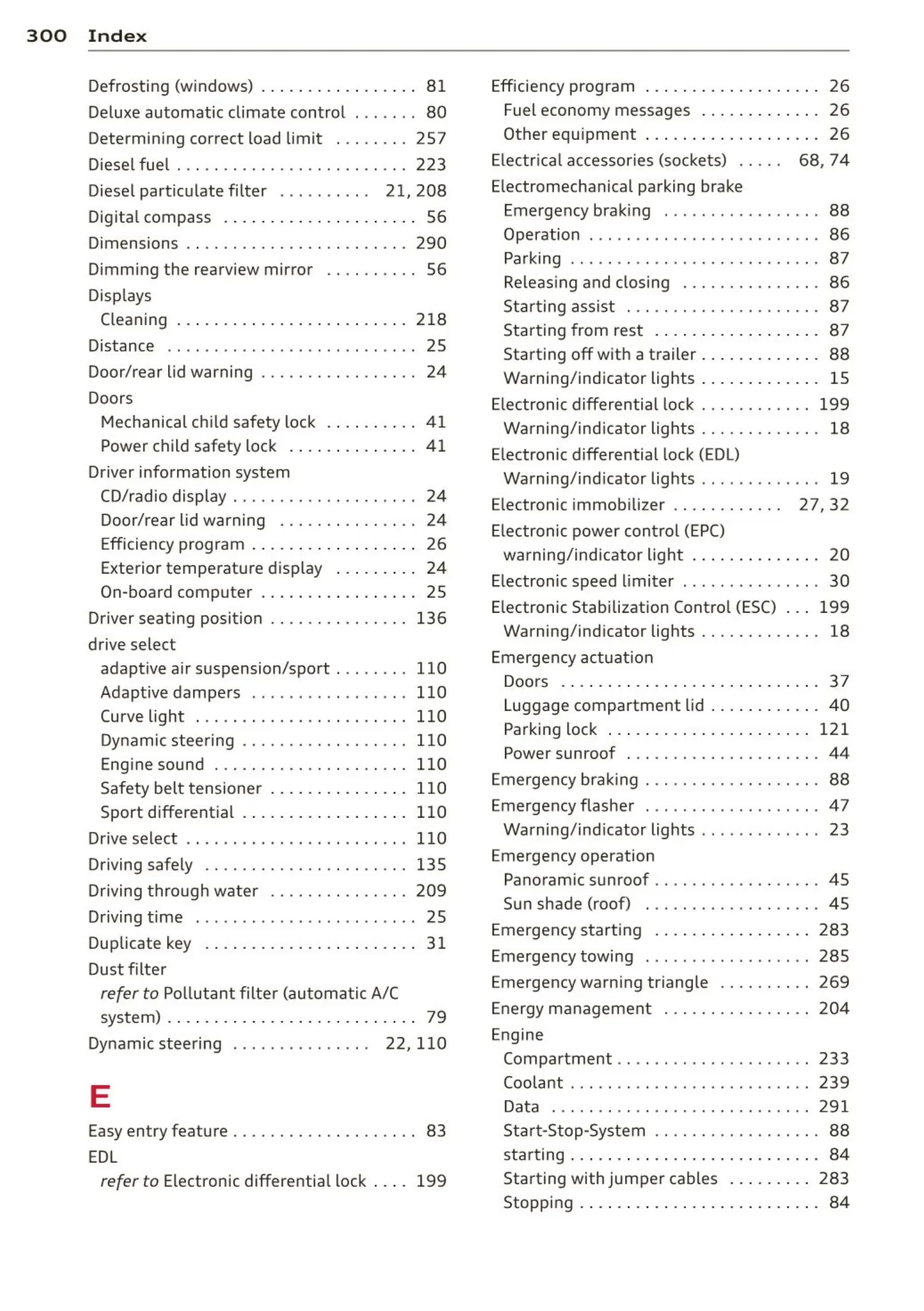 Emergency starting ................ . 283