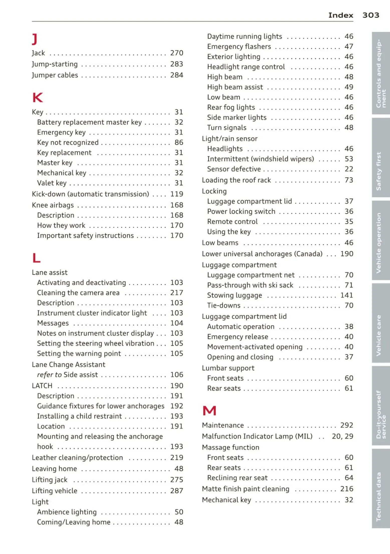 Luggage compartment net . . . . . . . . . . . 70