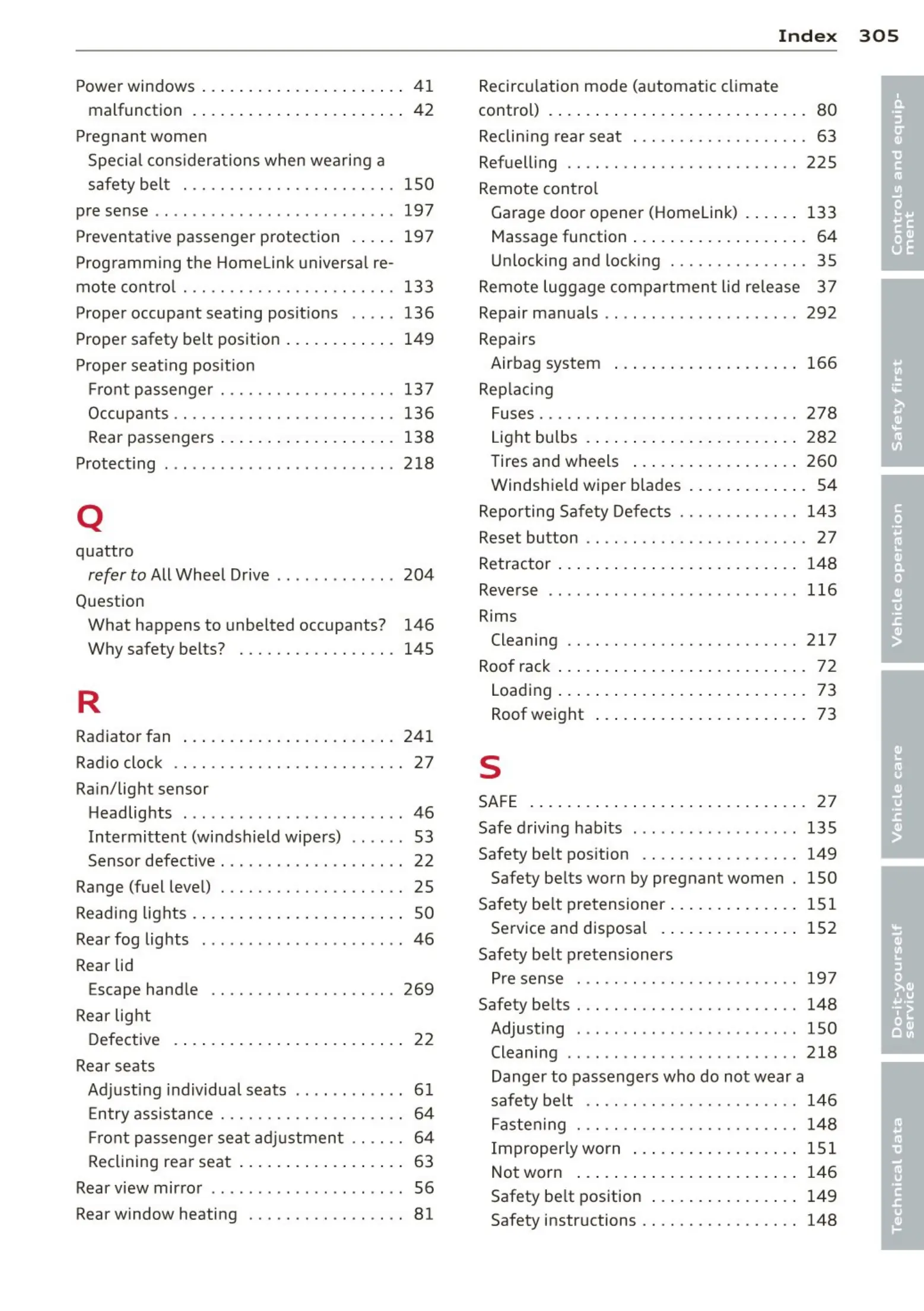 Safety belt position . . . . . . . . . . . . . . . . . 149