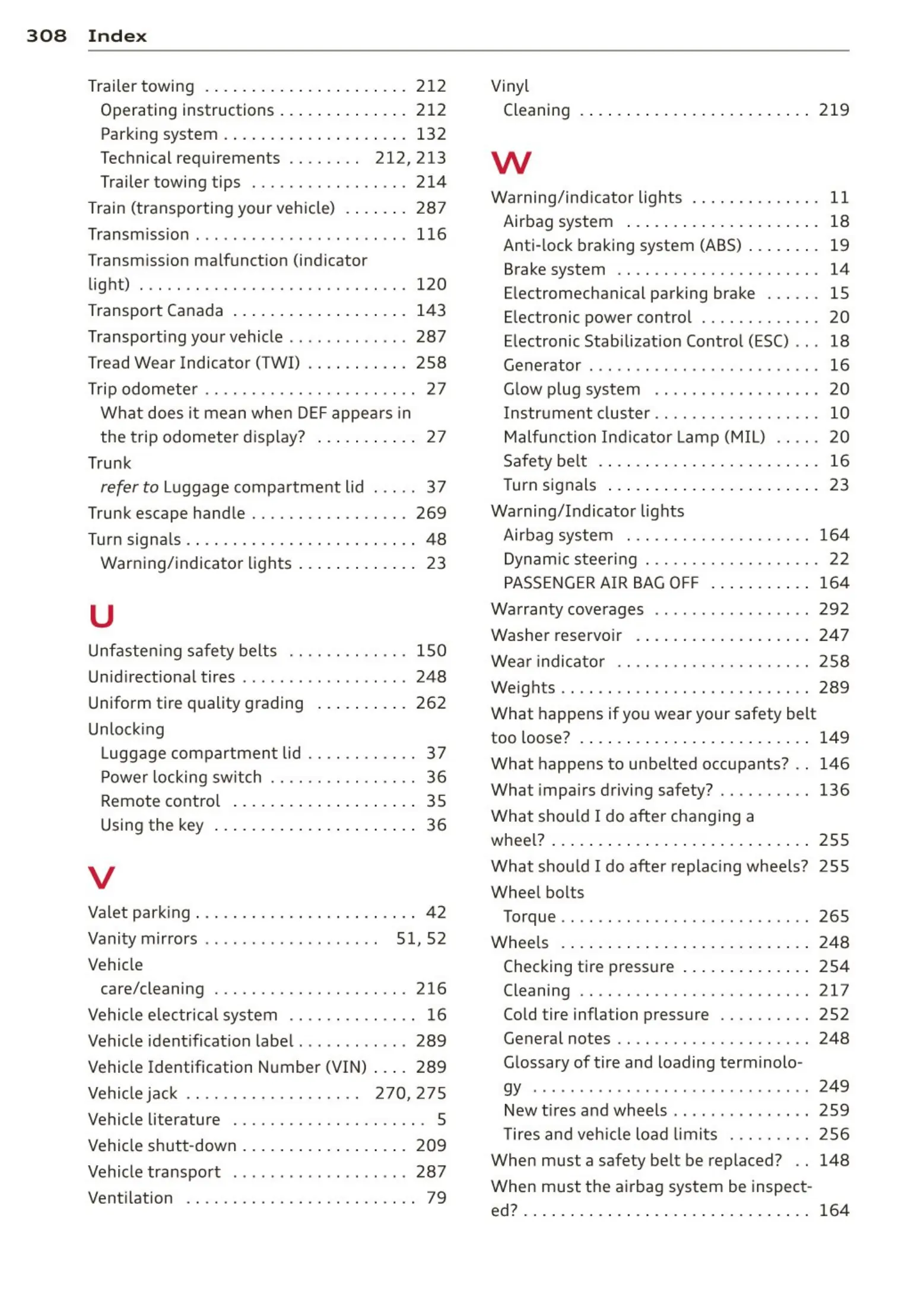 Tires and vehicle load limits ..... . . . . 256