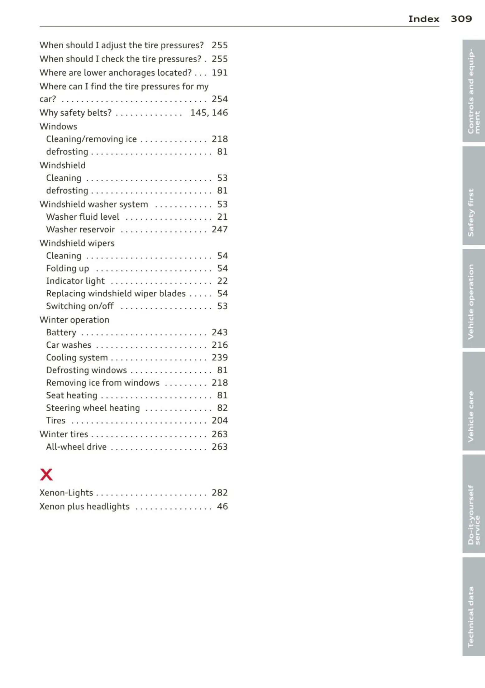 Winter tires . . ................ . . . . .. 263