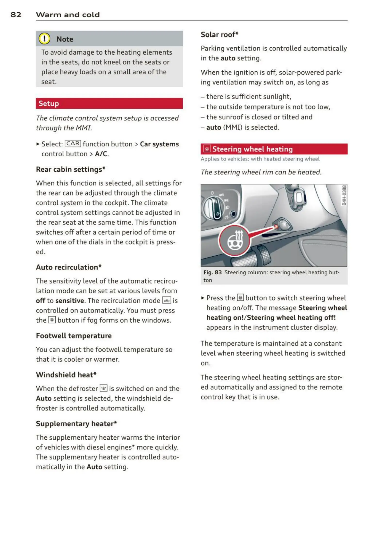 Fig. 83 Steer ing column: steering whee l heat ing but-