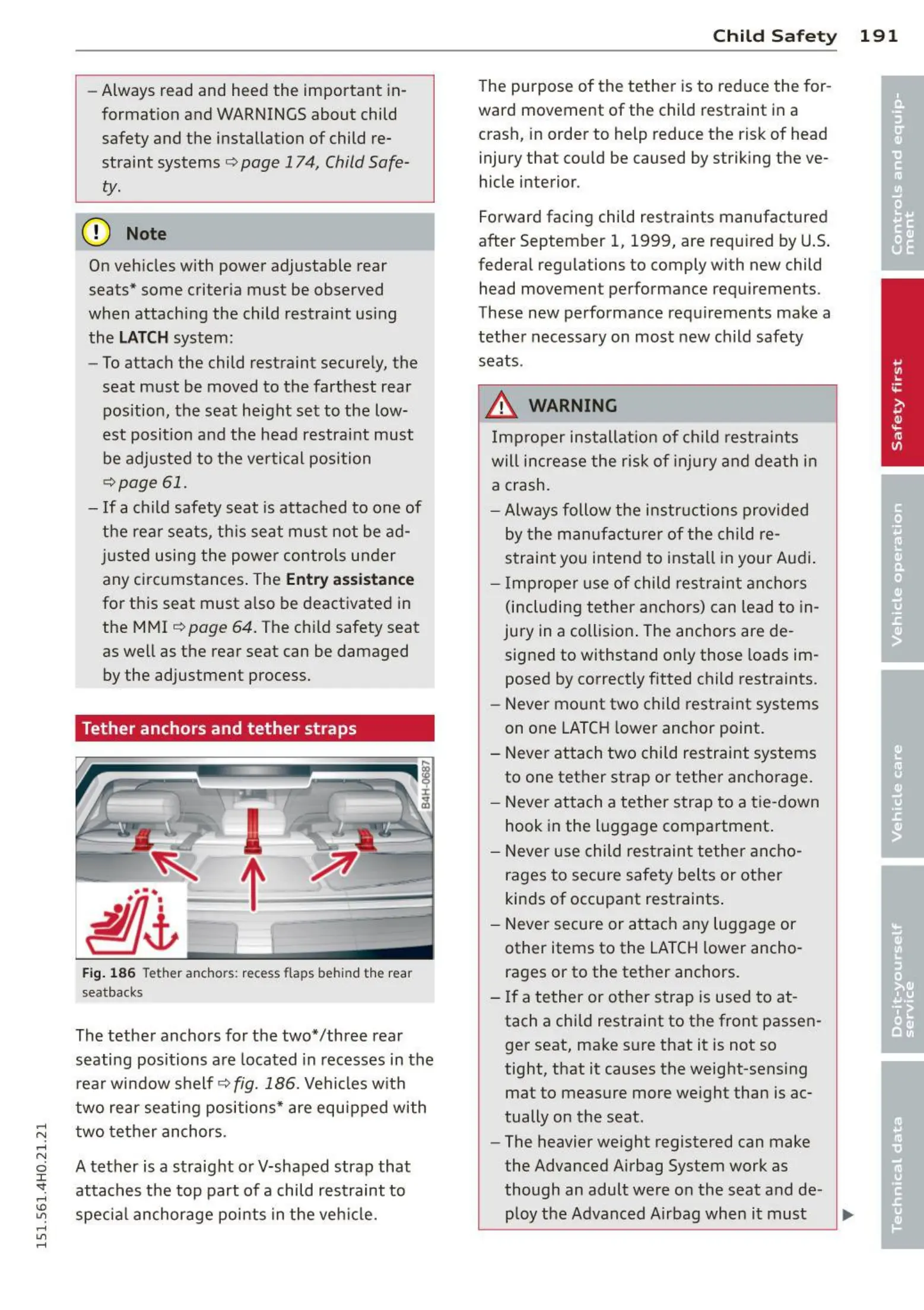Fig. 186 Tether anchors: reces s flaps behind the rear