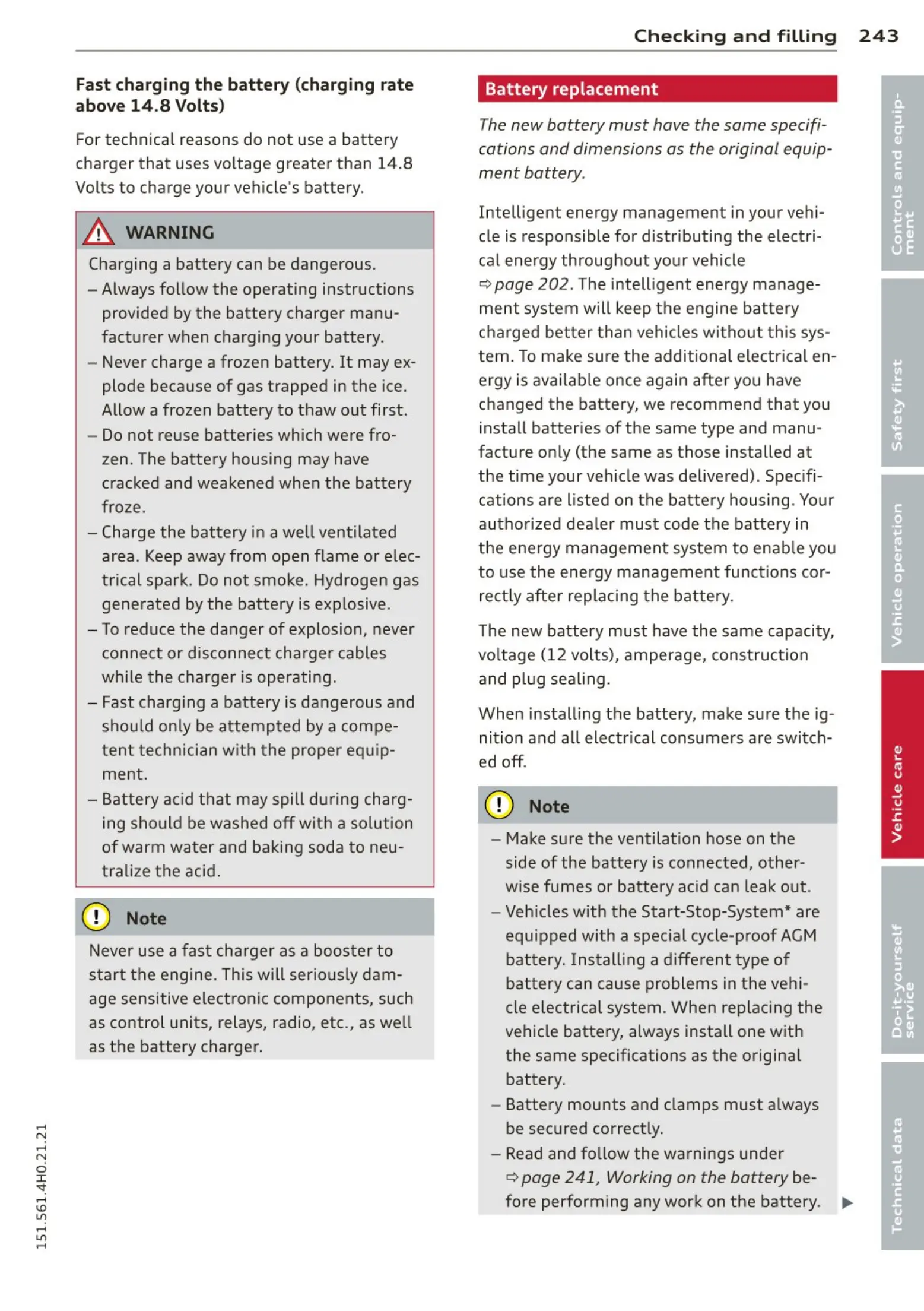 ¢ page 241, Working on the battery be-