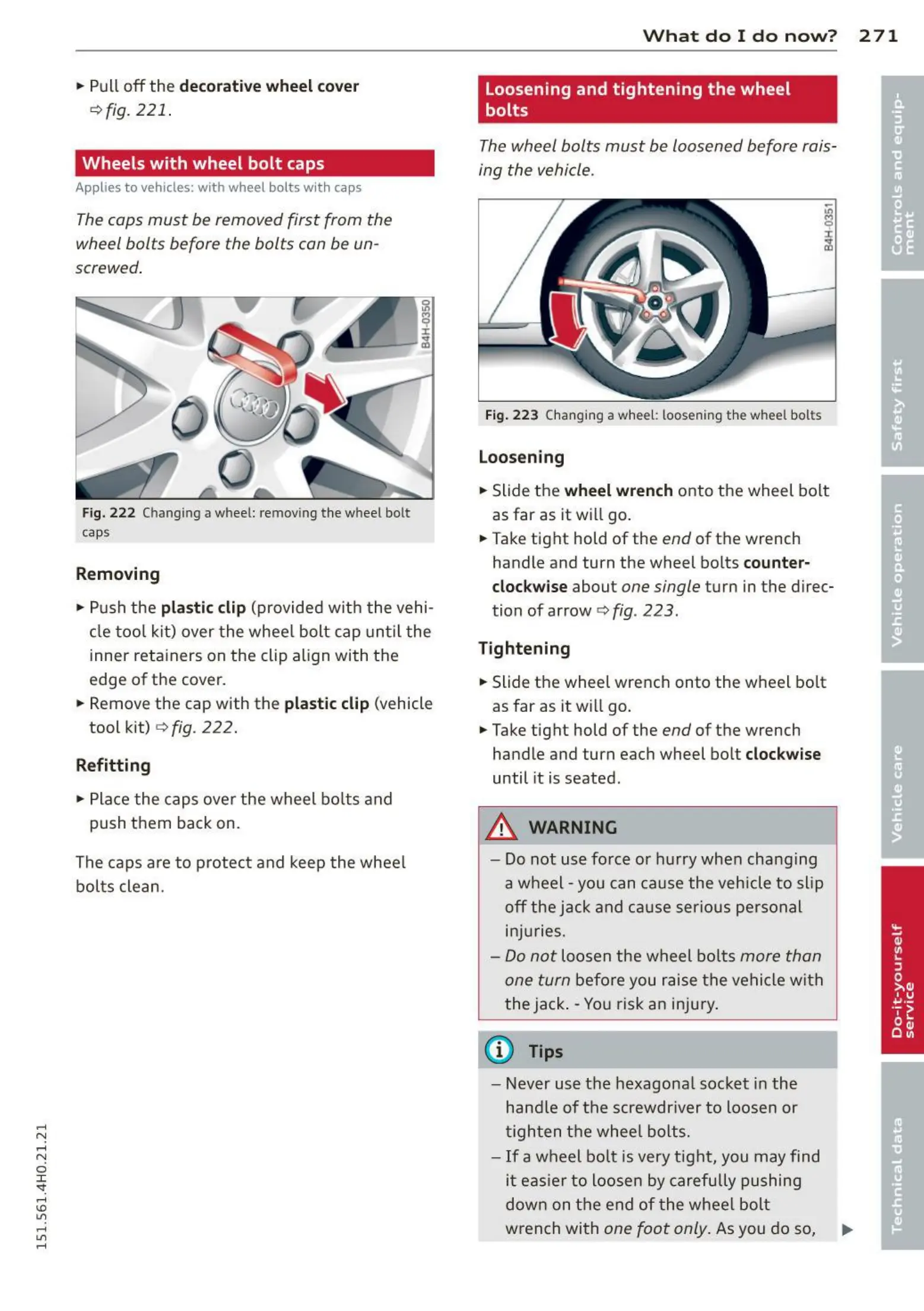 Fig. 223 Changing a whee l: loosen ing the wheel bolts