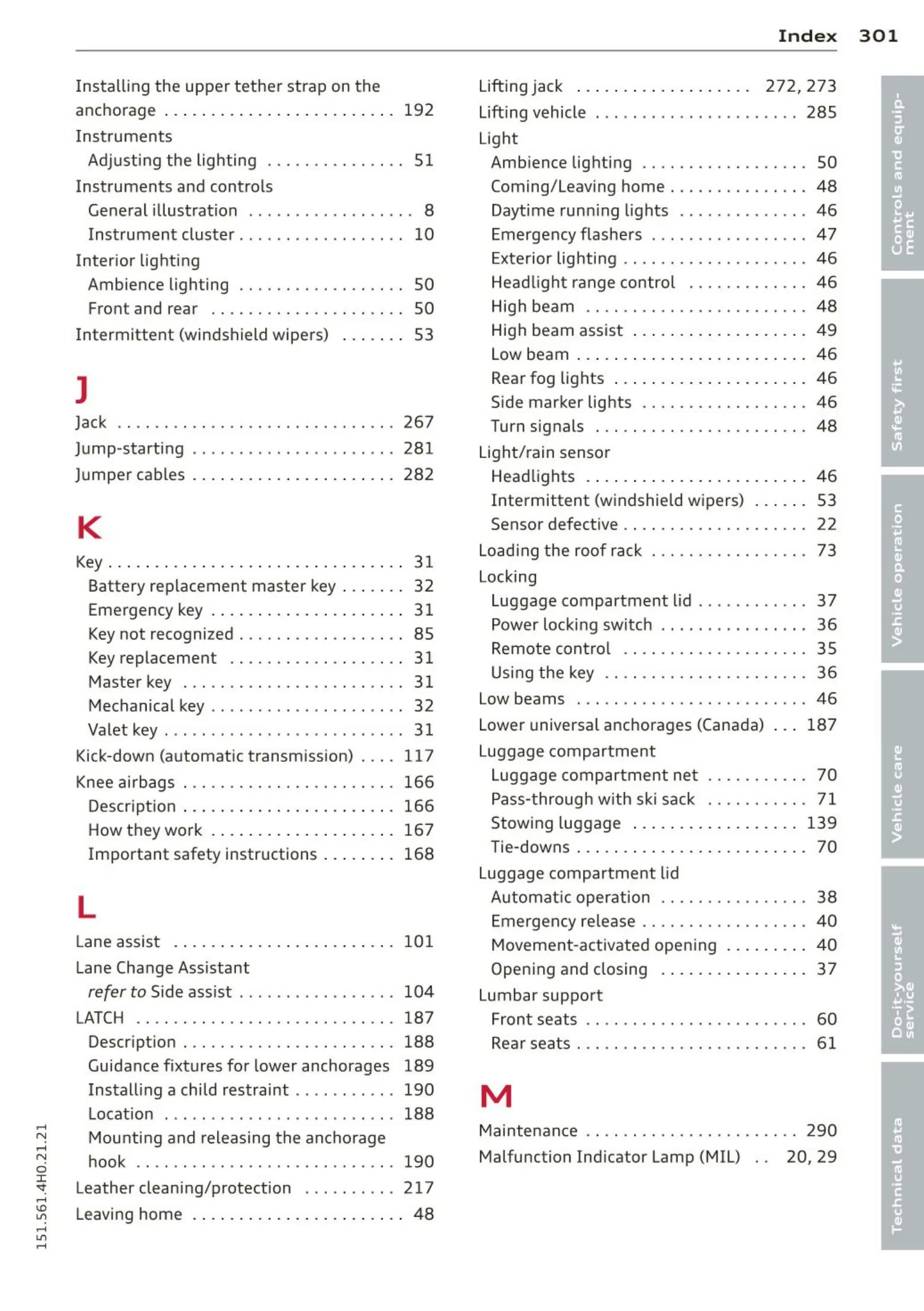 Knee airbags . . ... . ........ . ... . . . . . 166