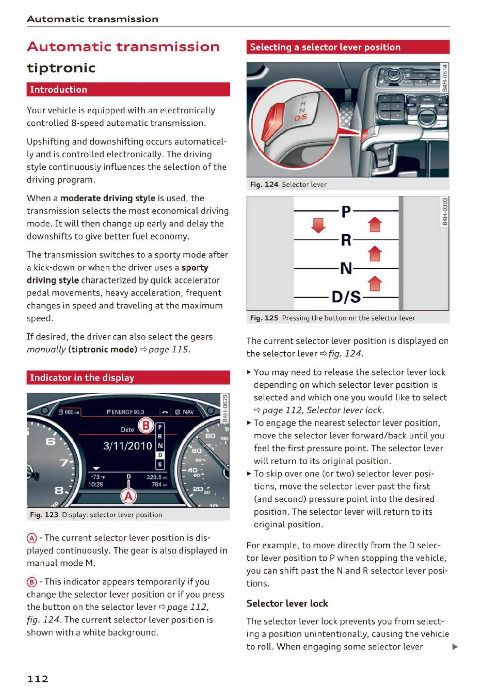 ~ page 112, Selector lever lock .