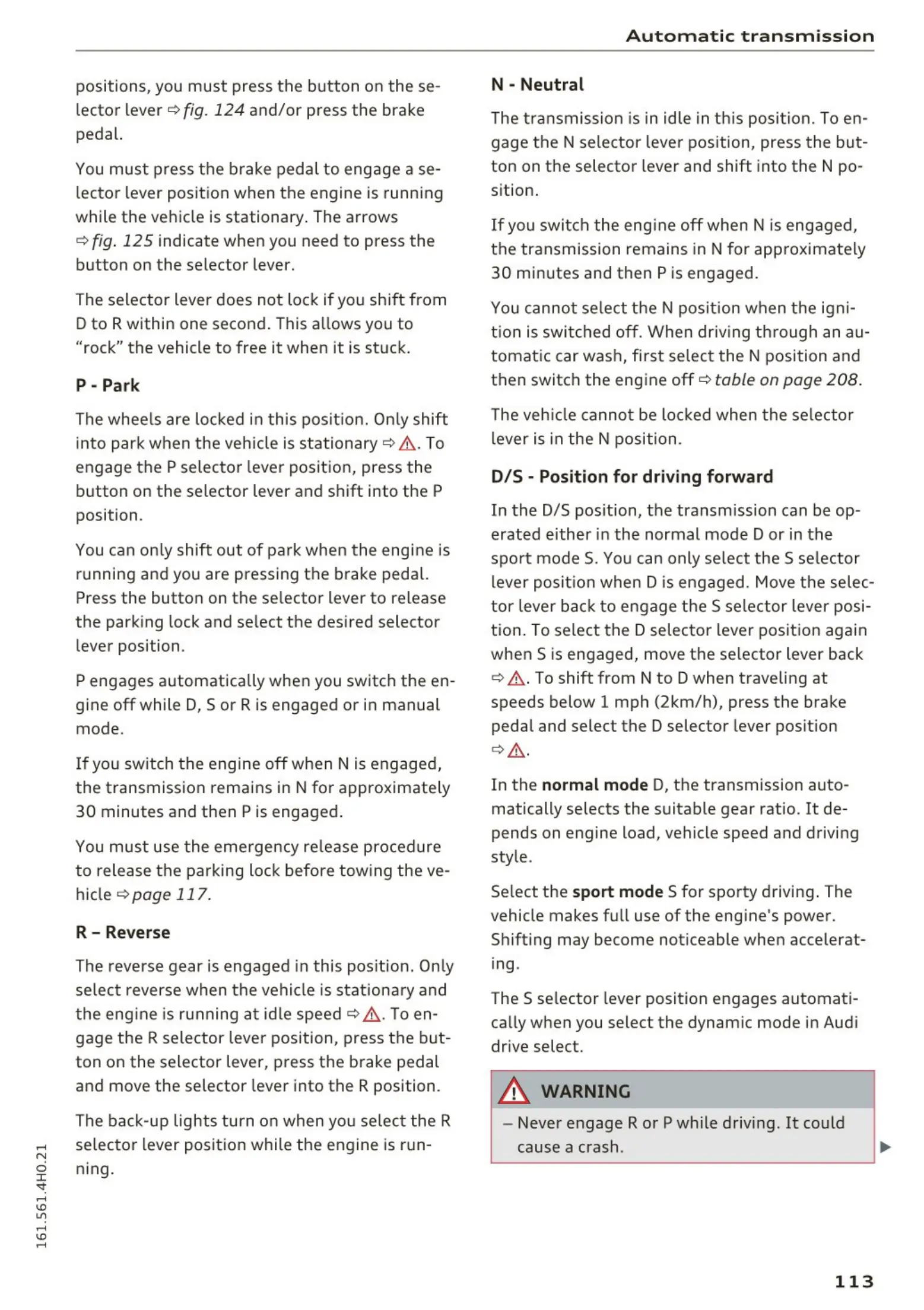 If you swi t ch the eng ine off when N is engaged ,
