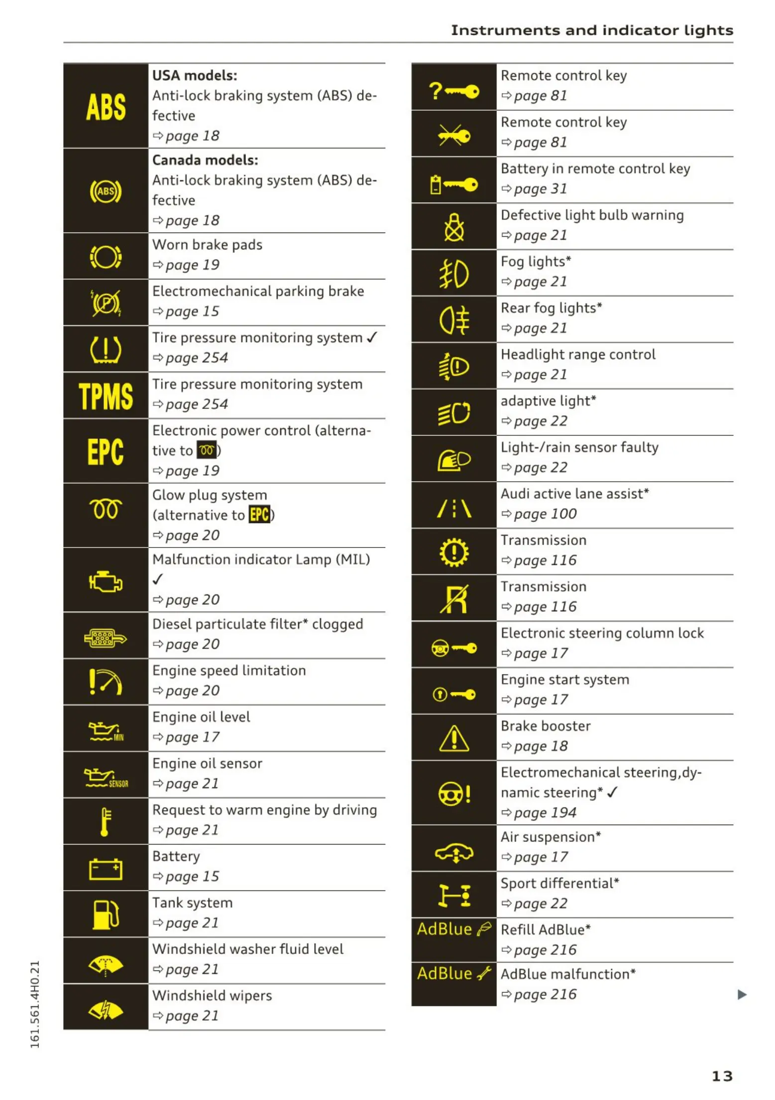 Instruments and ind icator lights