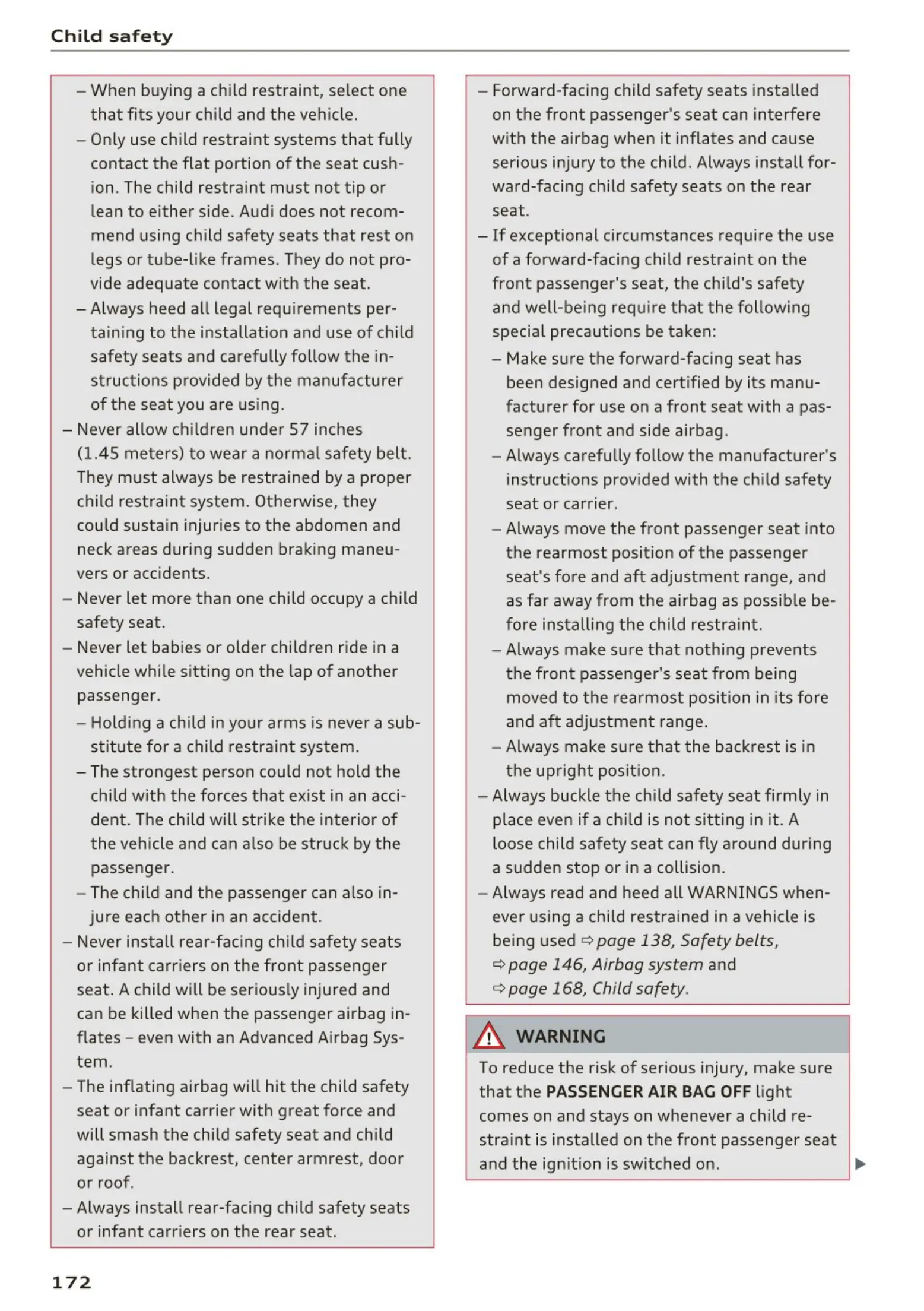 ¢ page 168, Child safety.