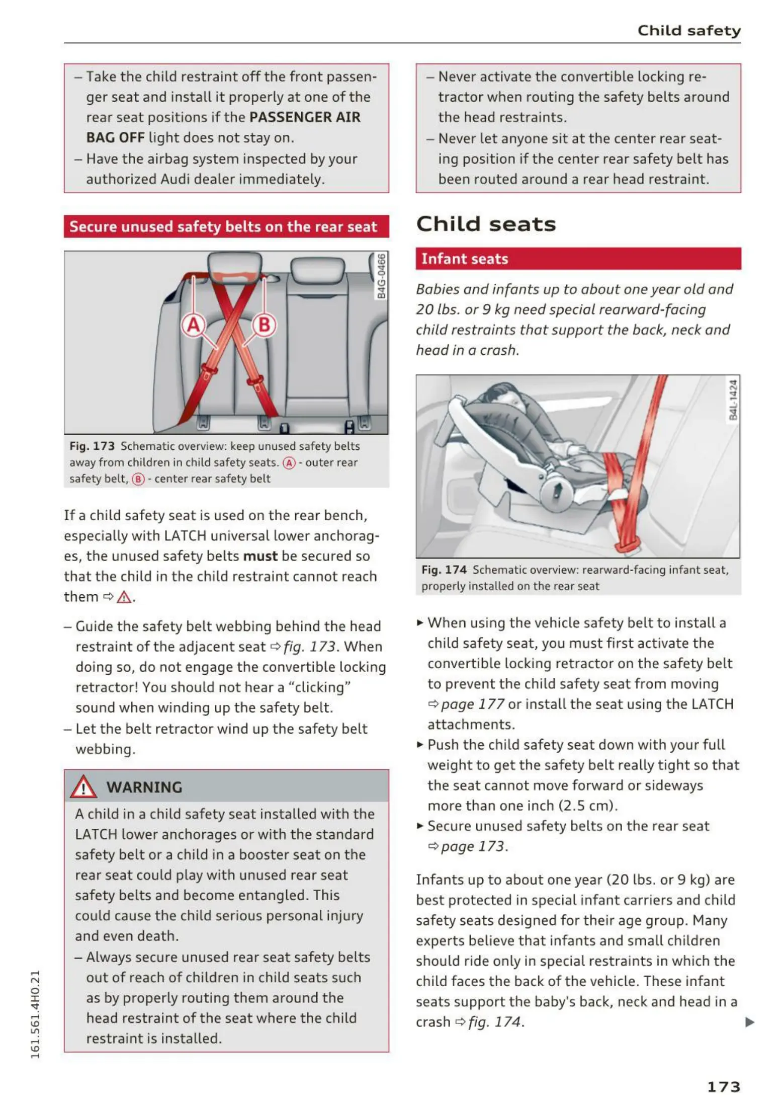 Fig. 173 Schemat ic overview: keep unused s-afety belts