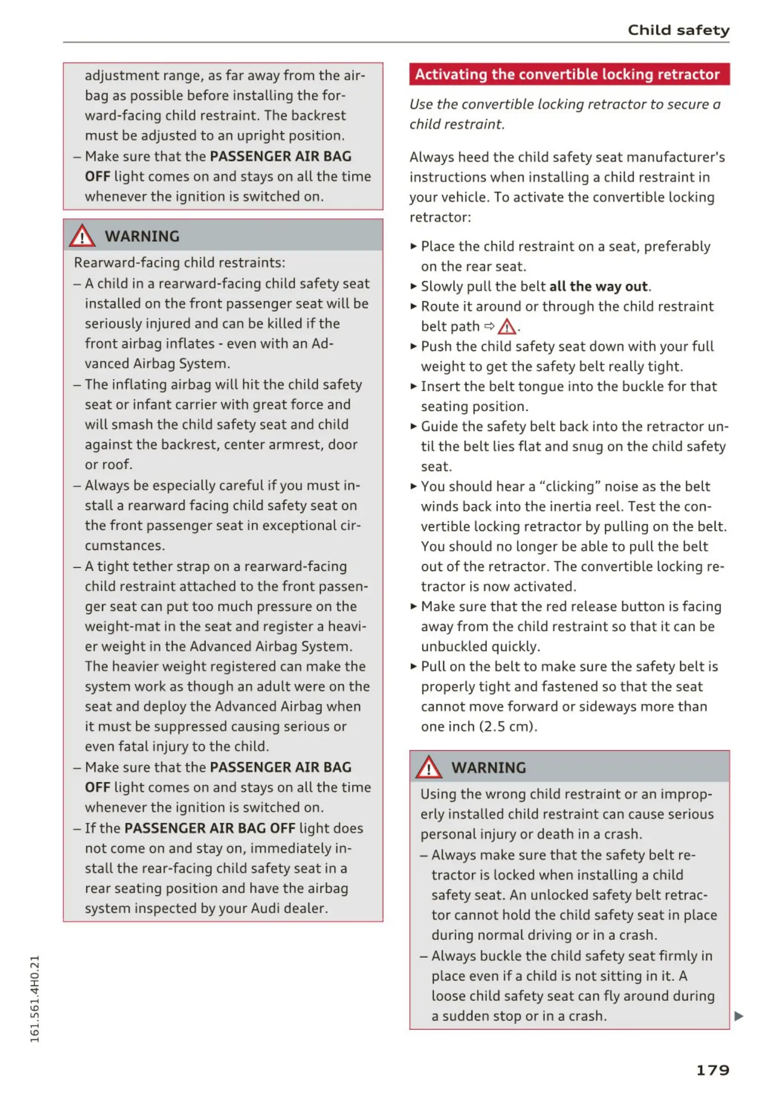 away from the child restraint so that it can be