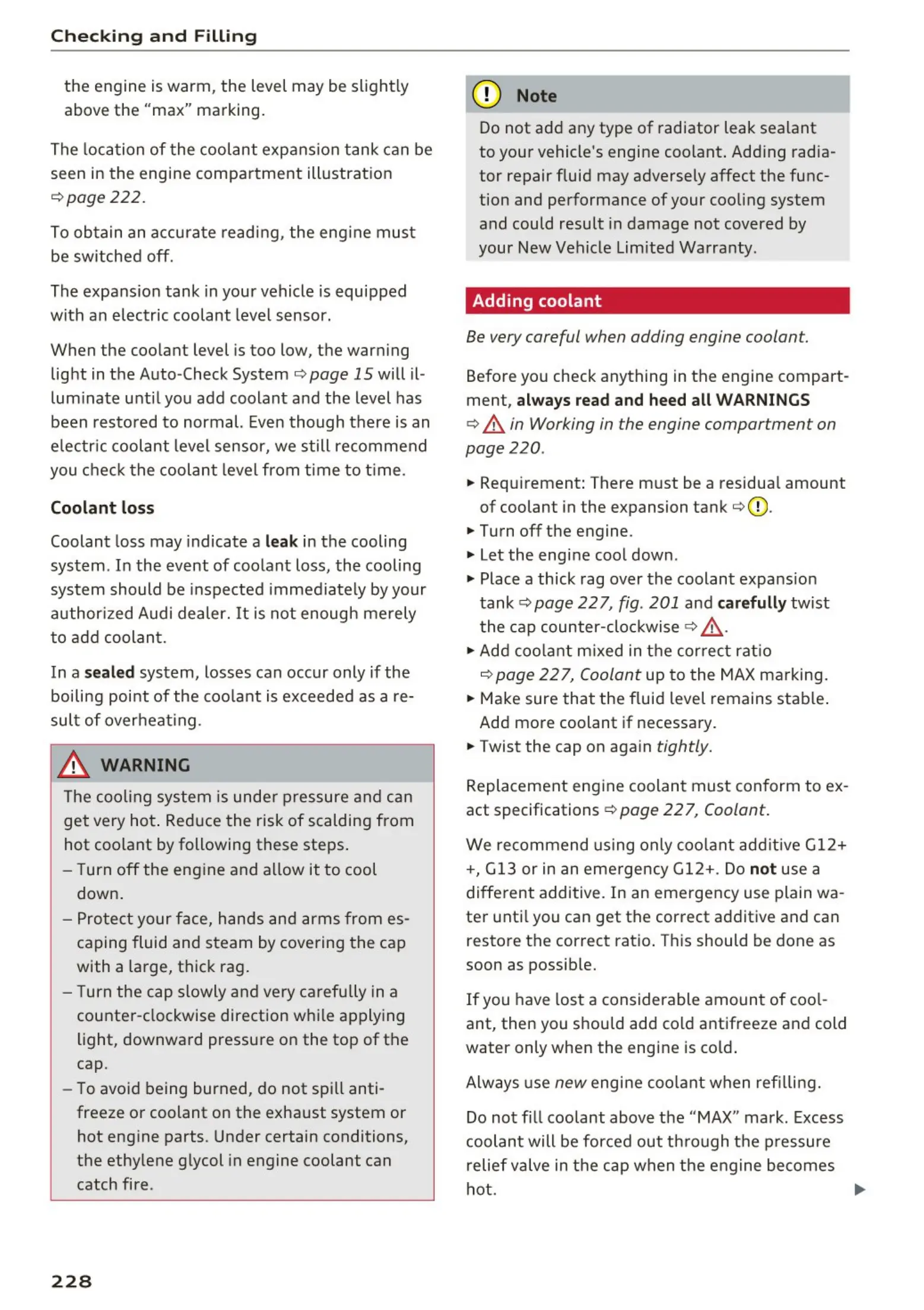 r::!> page 22 7, Coolant up to the MAX marking.