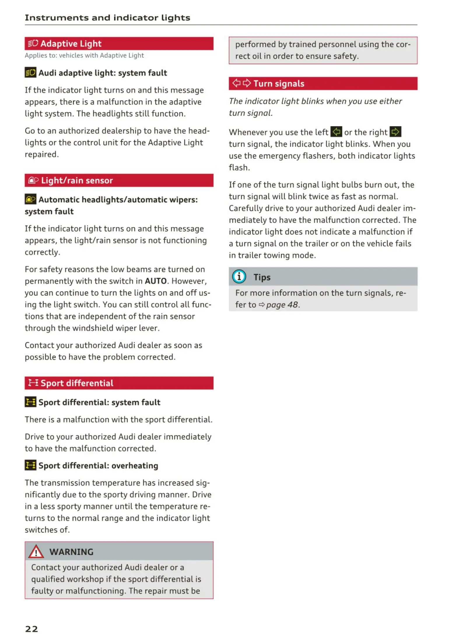 Contact your author ized Audi dealer as soo n as