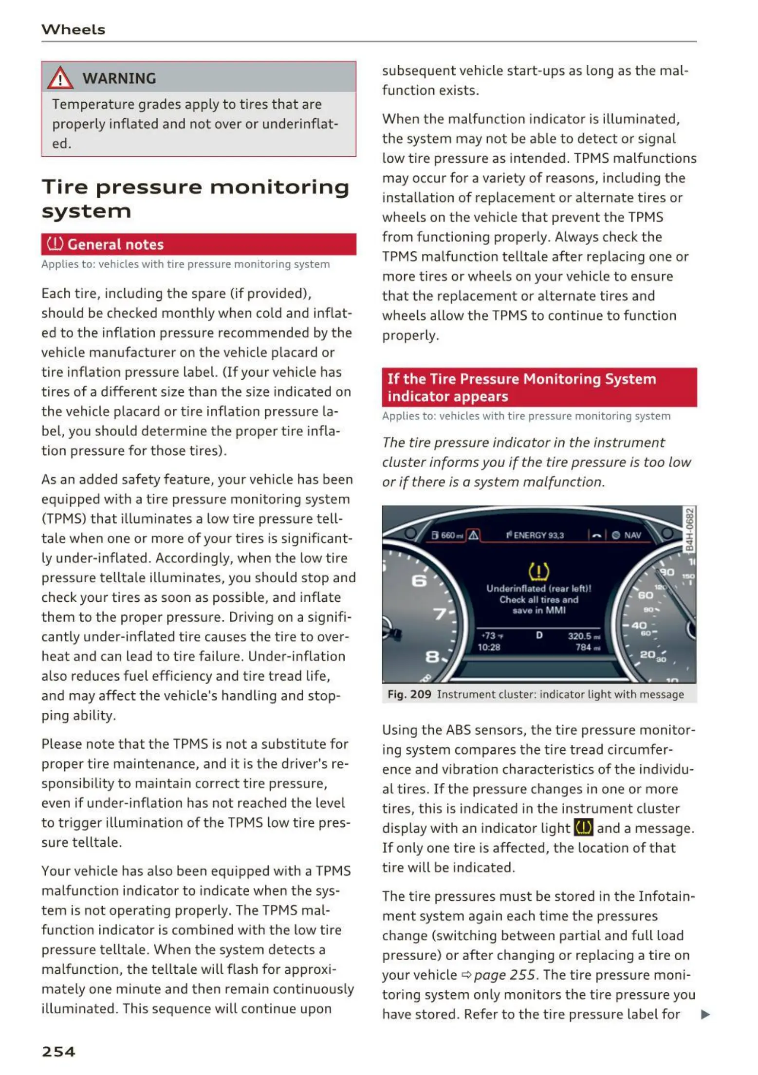Fig. 209 Instrument cluste r: indicator light w ith message