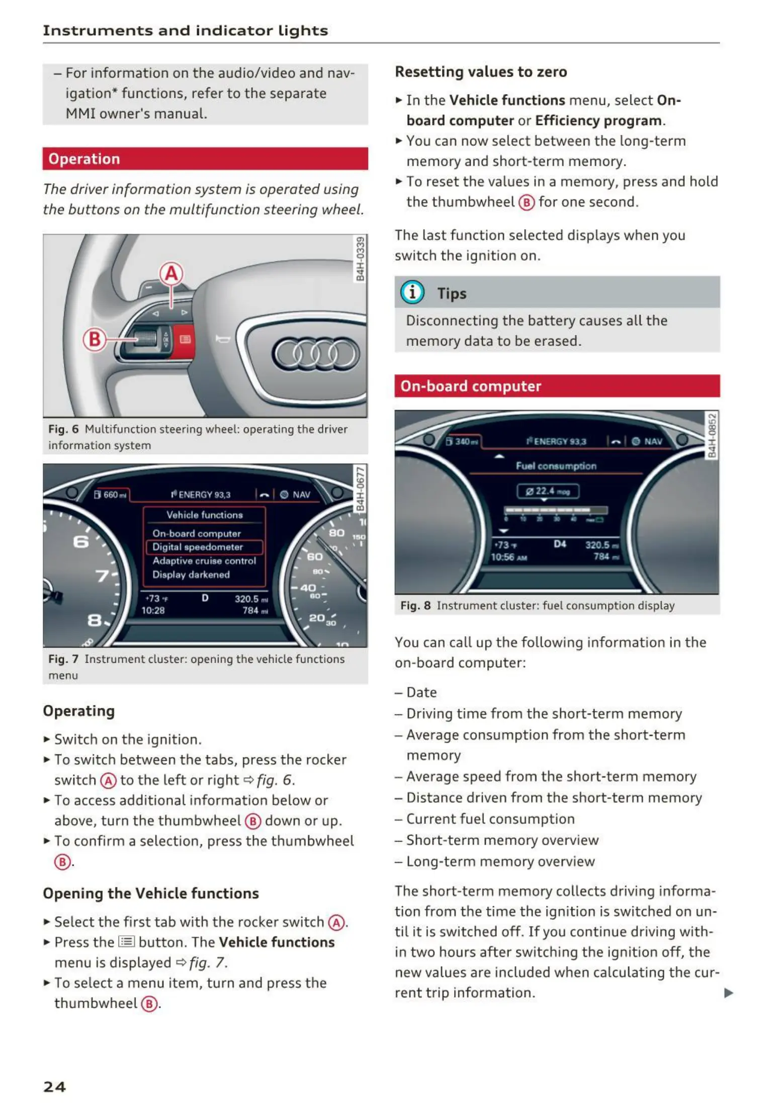 Fig. 7 Instrument cluster: opening the vehicle funct ions