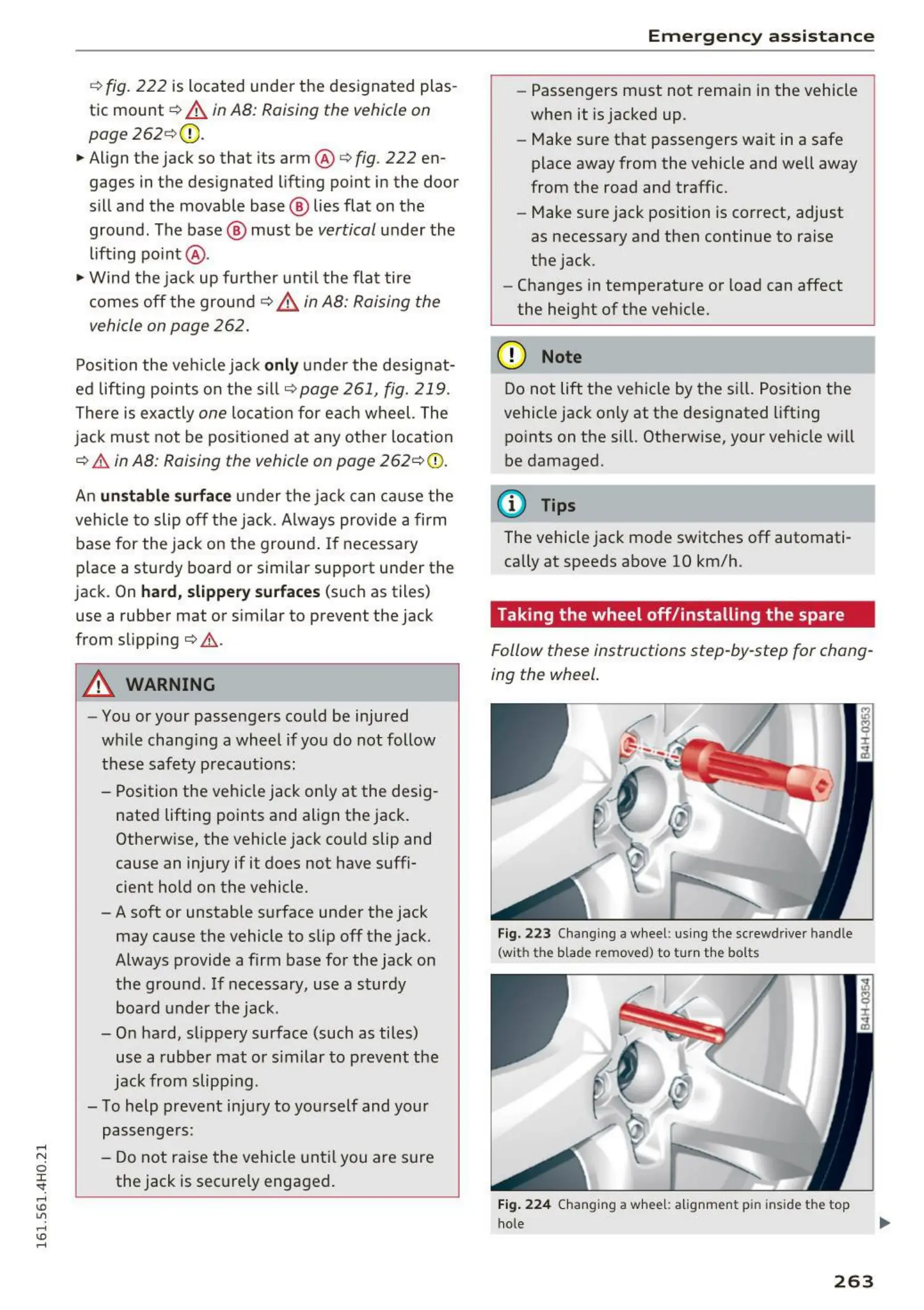Fig. 223 Cha nging a wheel: us ing the screwdriver handle