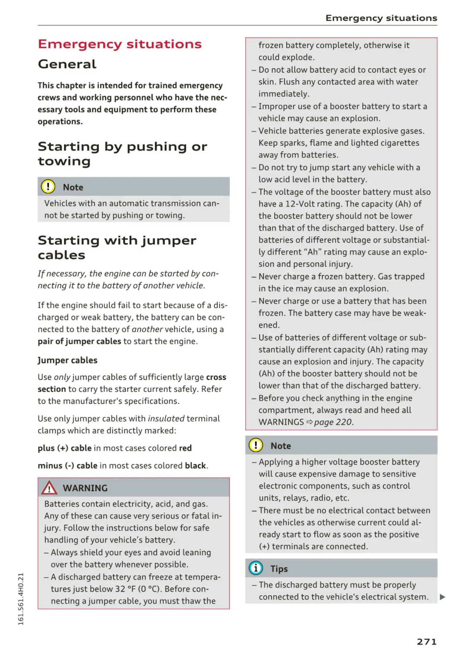 Use only jumper cables of suffic iently large cross