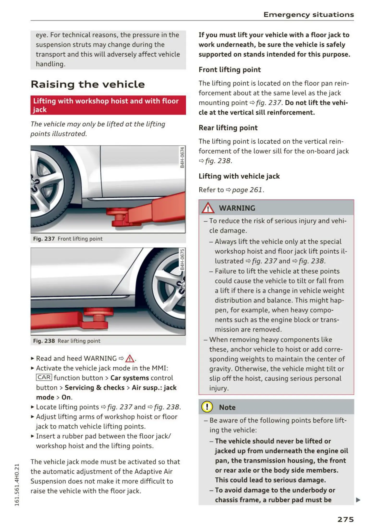 ... Locat e lift ing po ints ¢fig. 237 and ¢ fig. 238 .