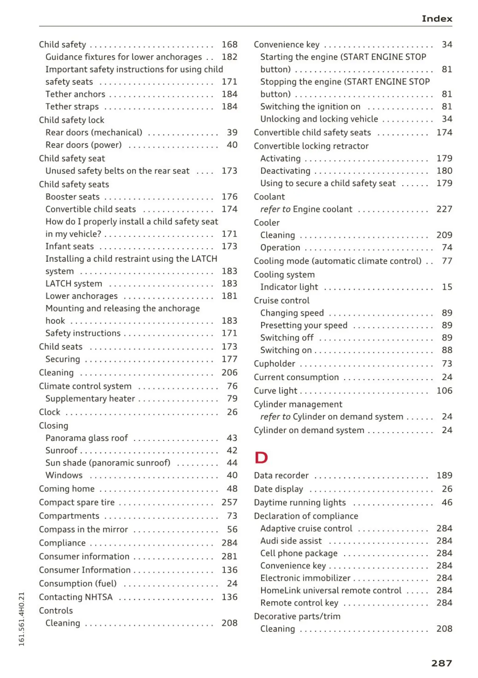 Audi side assist . . . . . . . . . . . . . . . . . . . . . 284