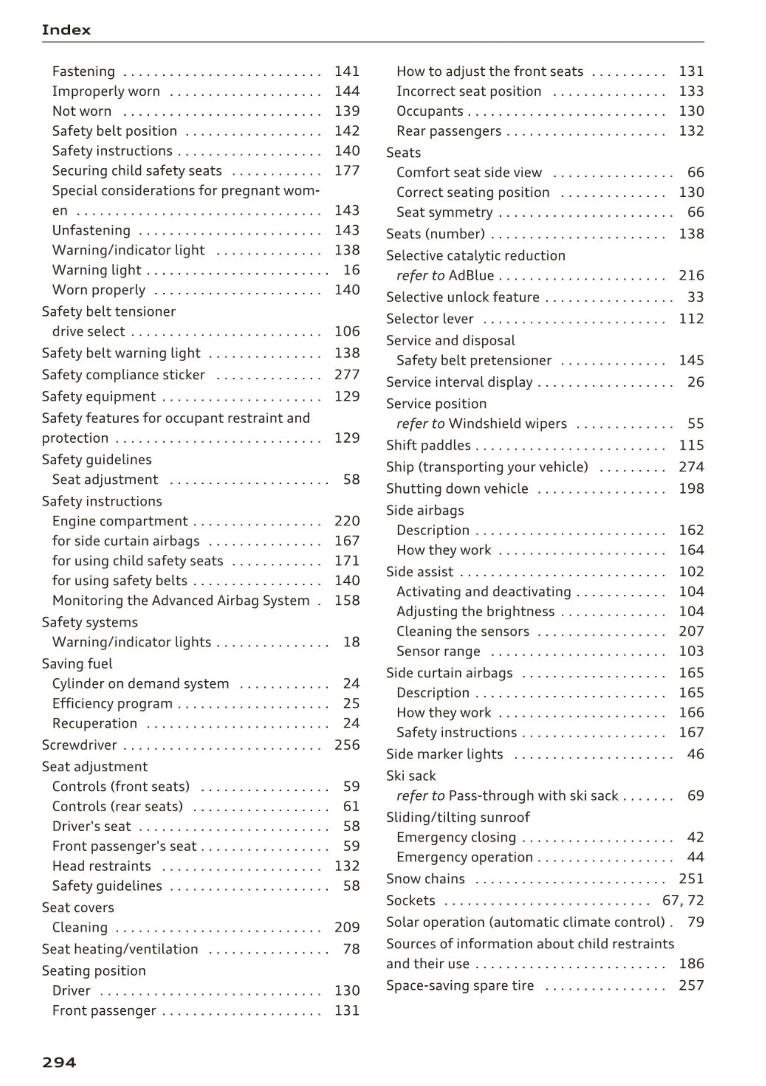 Selector lever . . . . . . . . . . . . . . . . . . . . . . . . 112