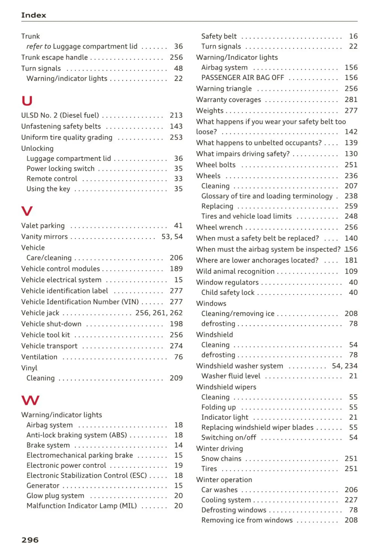 Wheel wrench . . . . . . . . . . . . . . . . . . . . . . . . 256