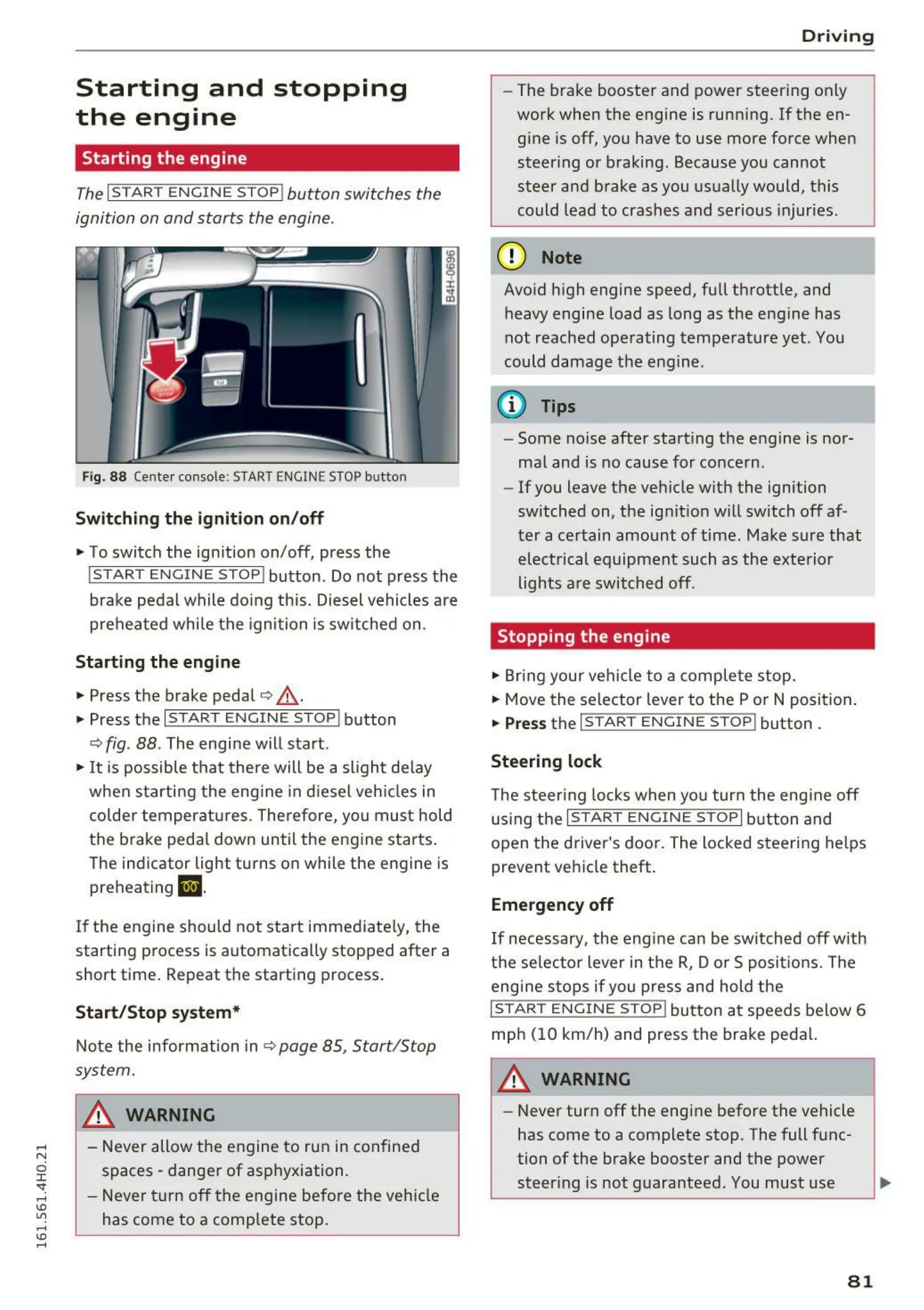 Fig. 88 Cente r console: START ENGINE STOP button