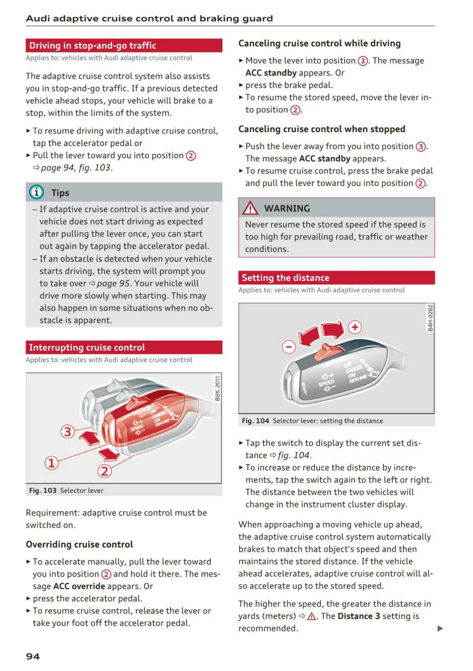 Applies to: vehicles with Audi adapt ive cru ise contro l