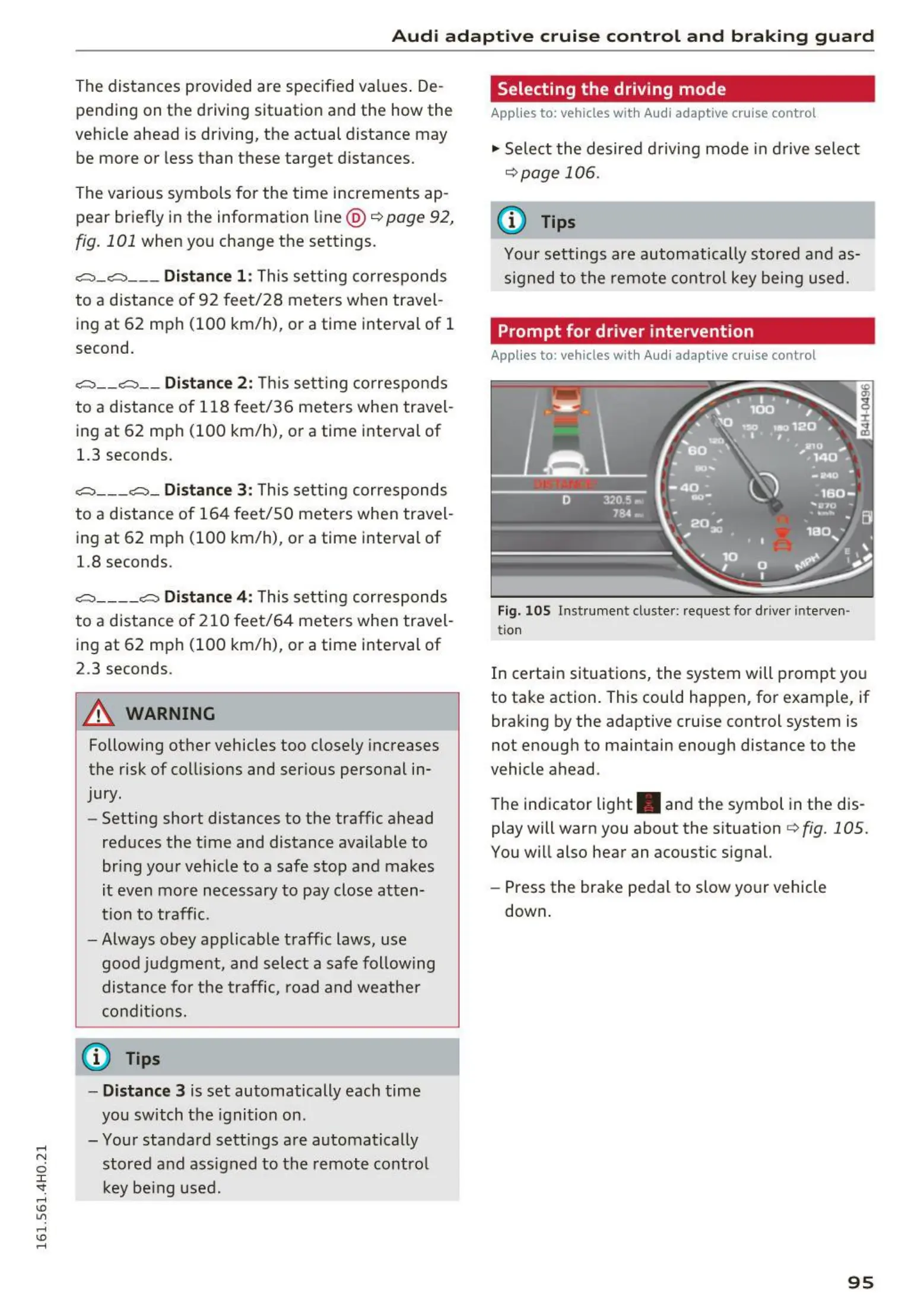 Applies to: vehicles with Audi adaptive cruise control