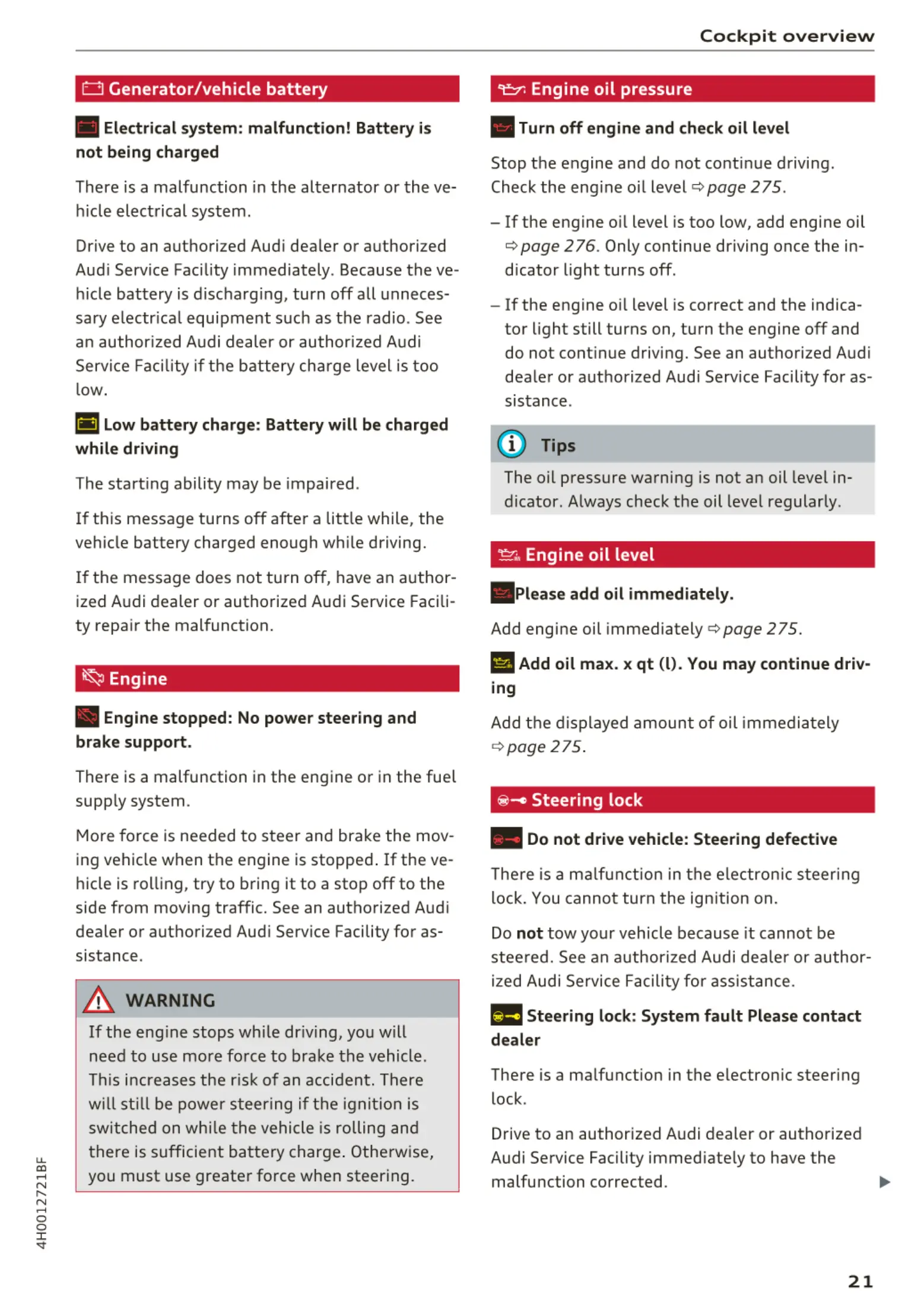 steered. See an authorized Audi dealer or author-