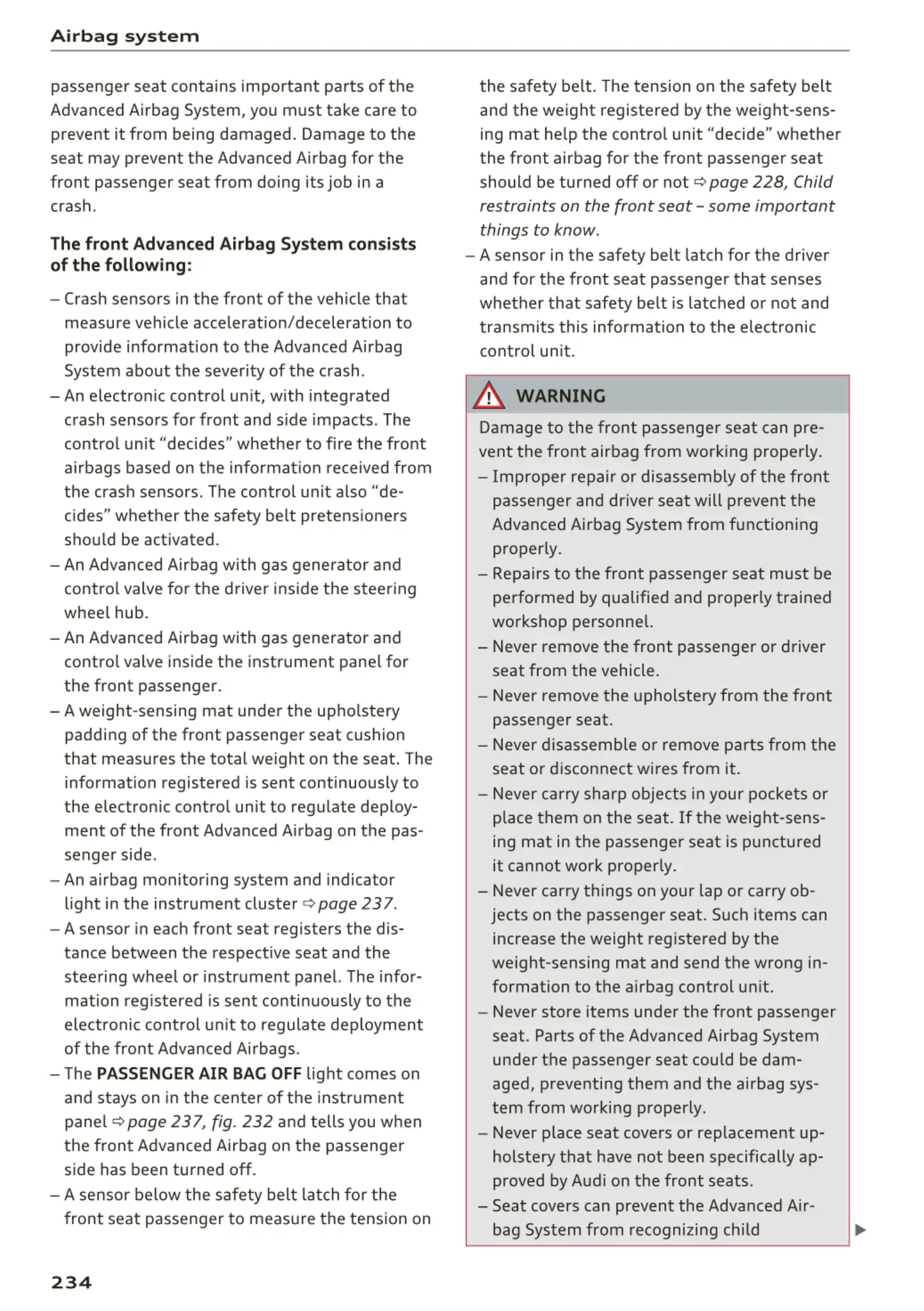 seat . Parts of the Advanced Airbag System