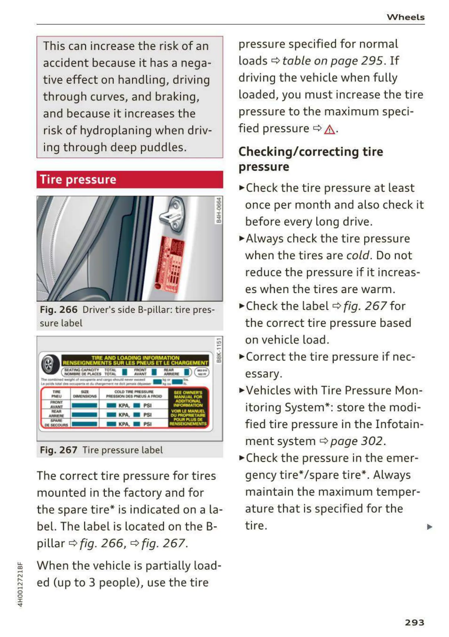 Fig. 266 Driver's side B-pillar : tire pres-