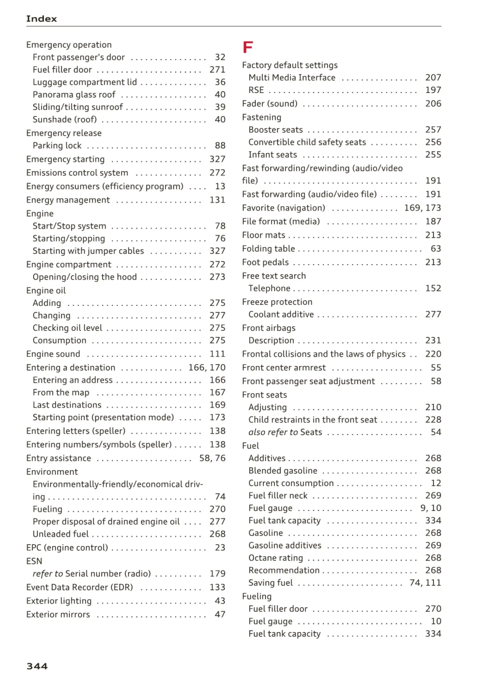 Unleaded f uel . . . . . . . . . . . . . . . . . . . . . . . 268