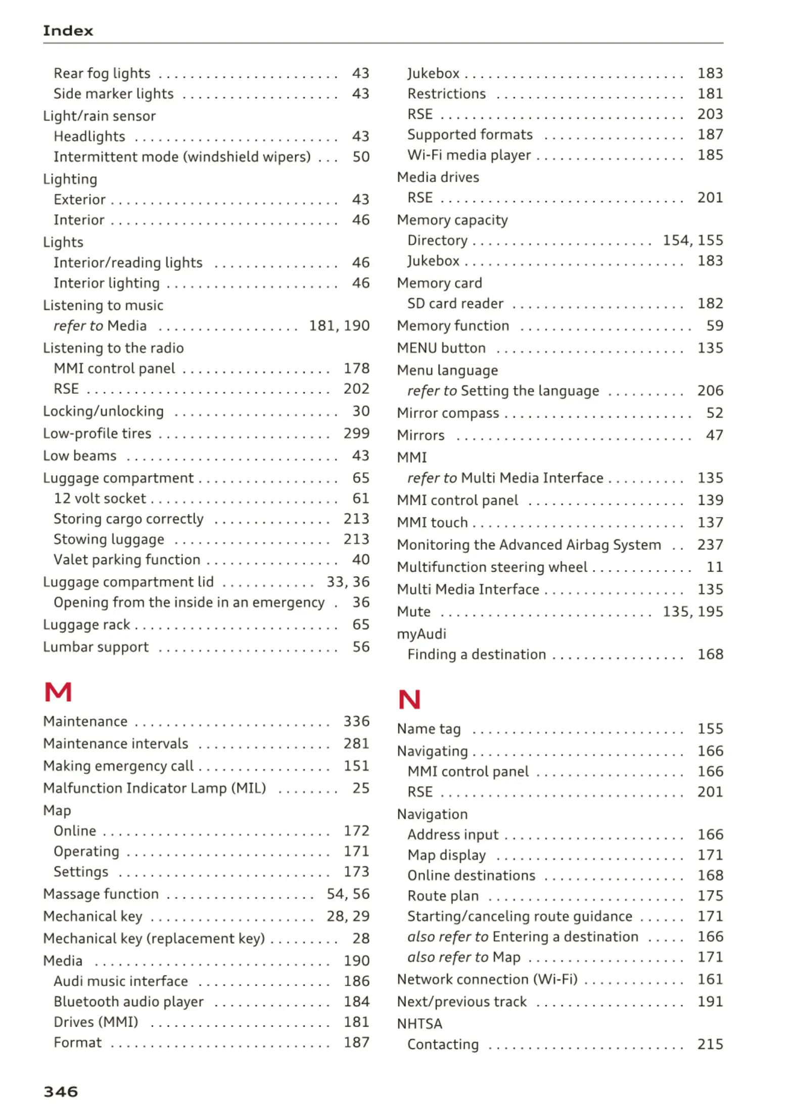 Interior/reading lights . . . . . . . . . . . . . . . . 46