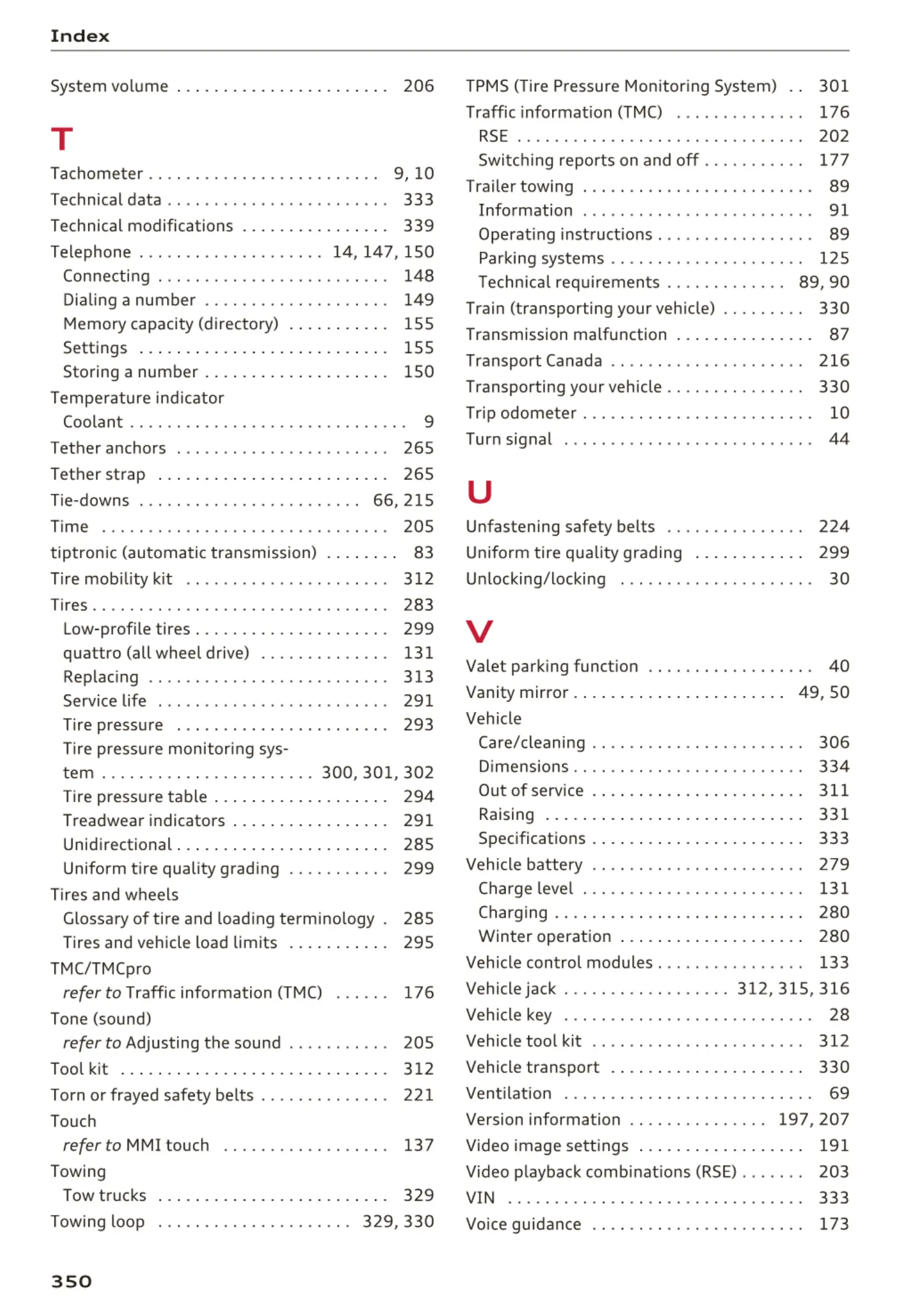 Traffic information (TMC) . . . . . . . . . . . . . . 176