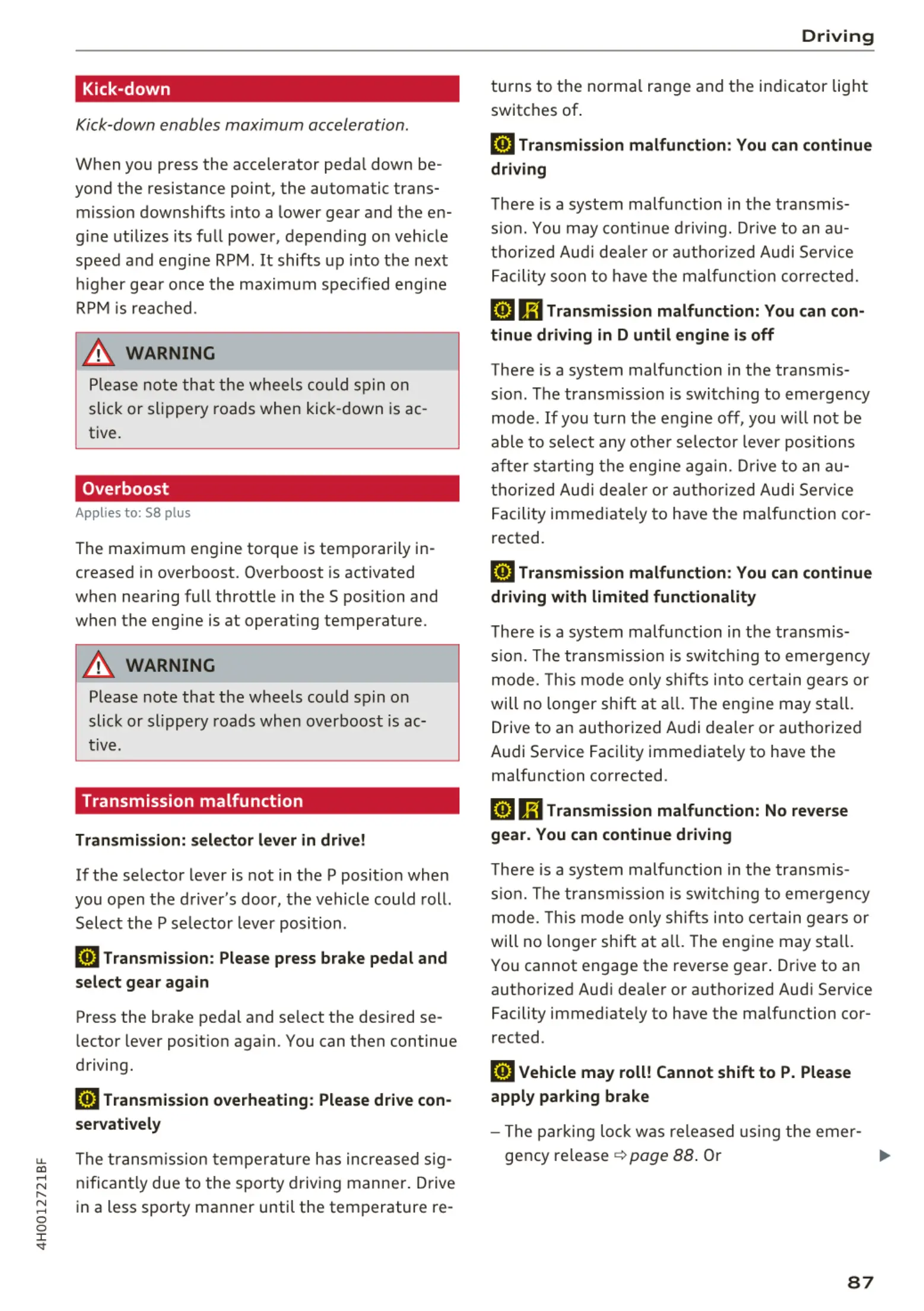 slick or slippery roads when kick -down is ac-