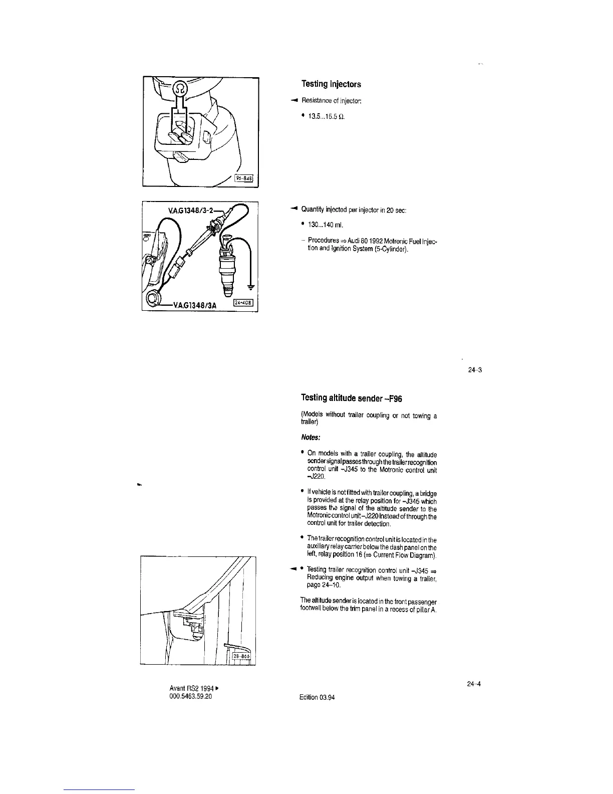 Audi Avant RS2 - 24 Mixture Preparation, Injection; Testing Injectors; Testing Altitude Sender -F96