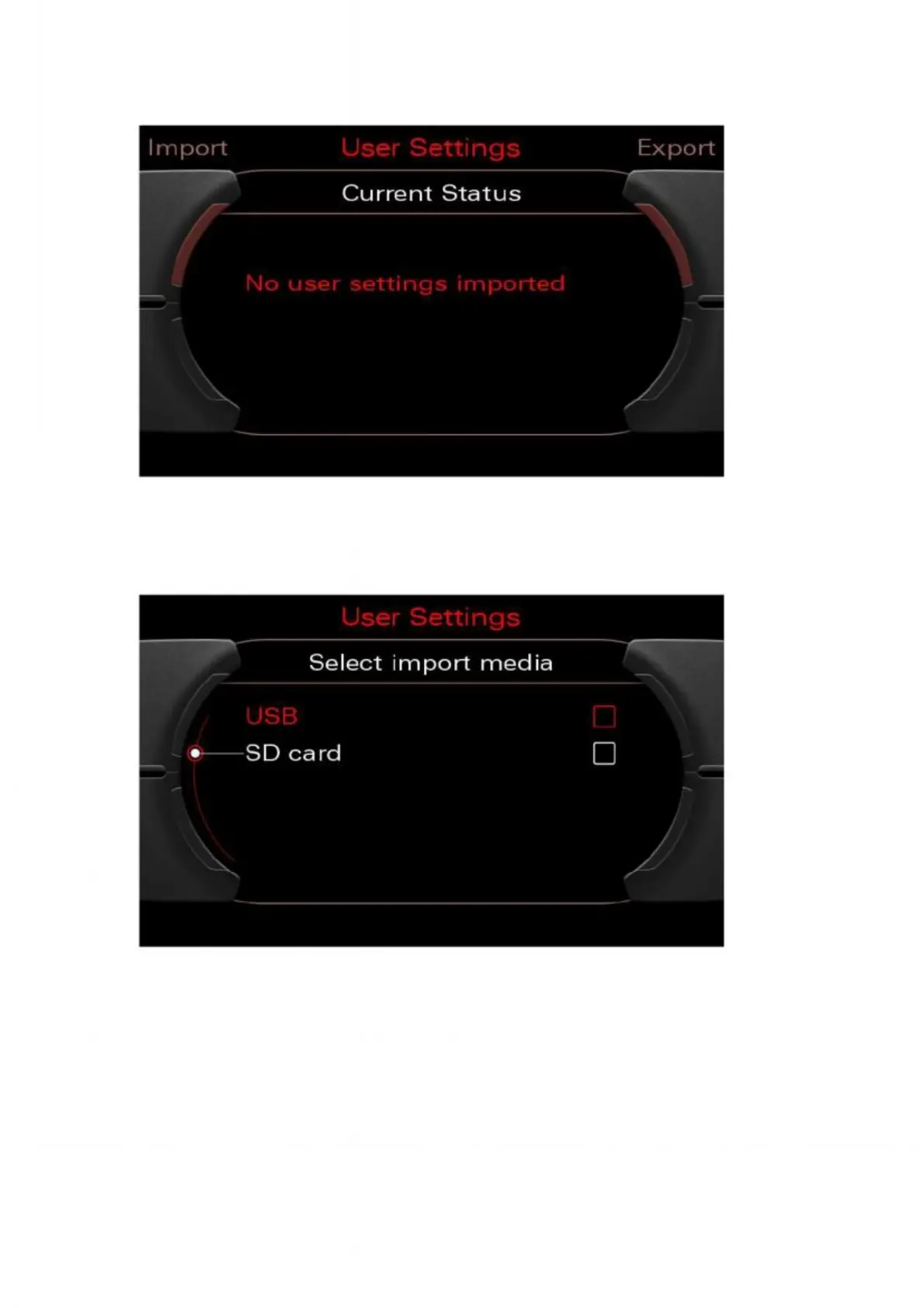 7. Make sure that the medium (USB or SD card) containing the export file is connected