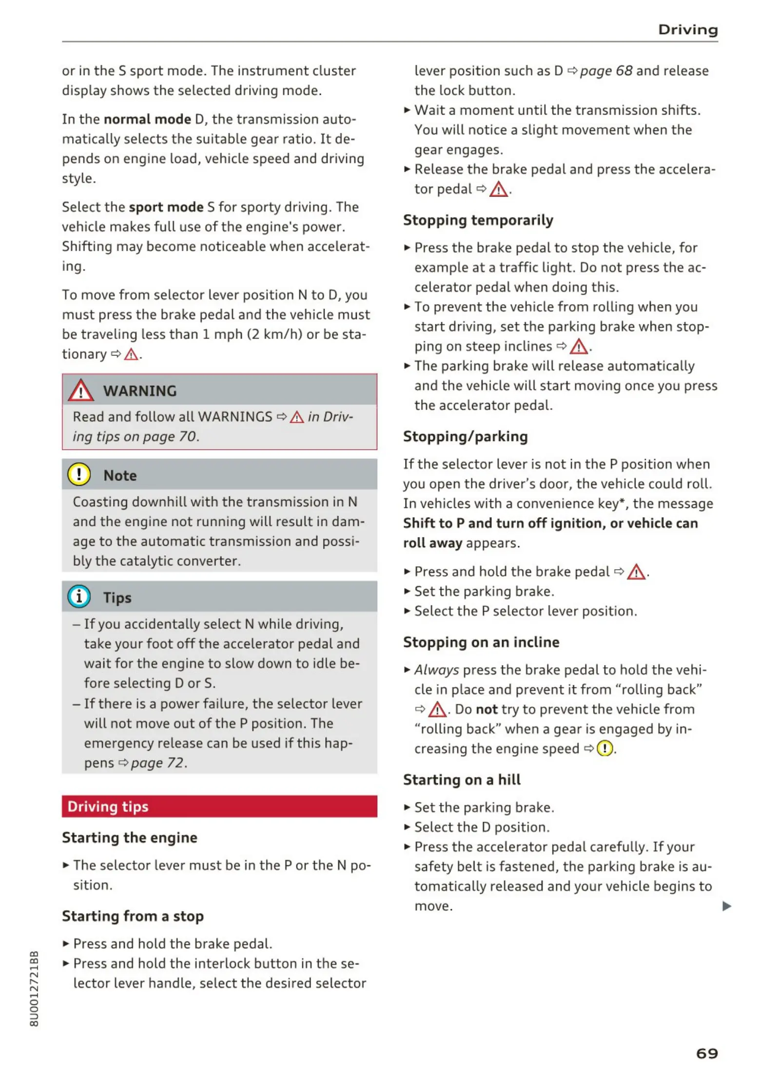 lever position such as D ¢ page 68 and release