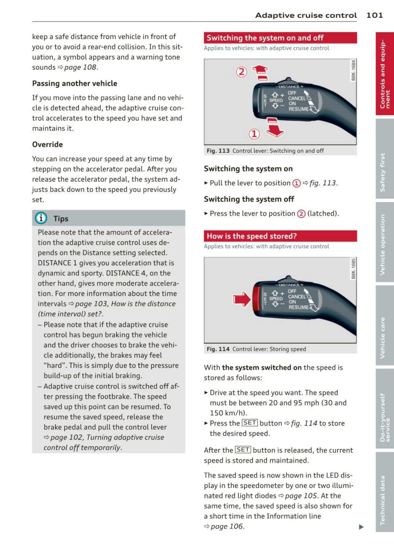 ¢ page 102, Turning adaptive cruise