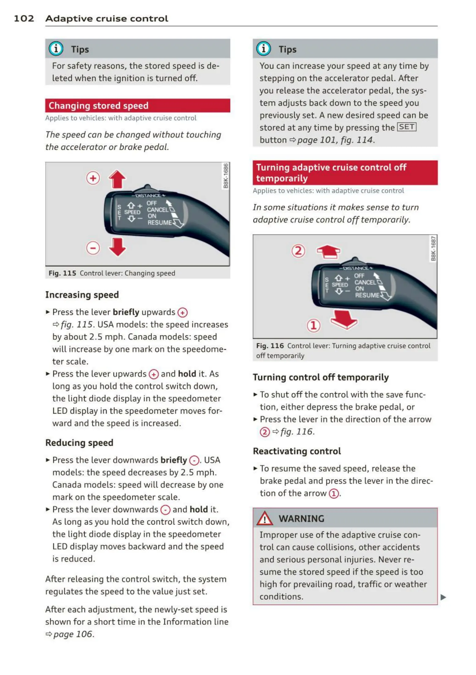 Fig. 1 16 Control lever: Turnin g adapt ive cruise contro l
